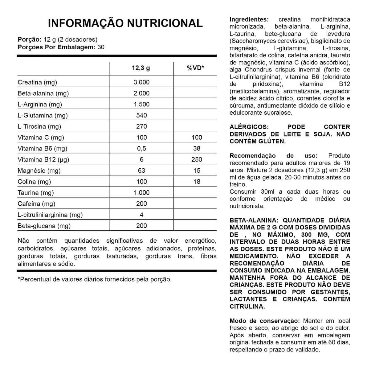 - Desenvolvido para melhorar energia e foco nos treinos.