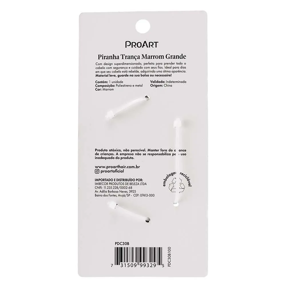 A Piranha Trança Grande ProArt vem com design superdimensionado, ela é perfeita para prender uma grande quantidade de cabelo com segurança sem prender, quebrar ou repuxar os fios.