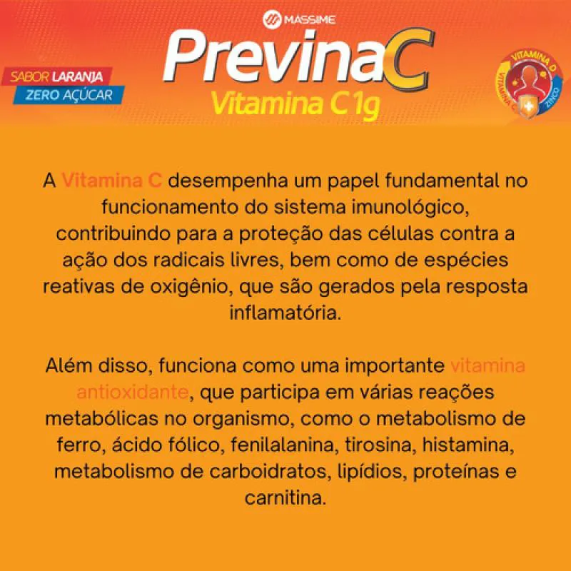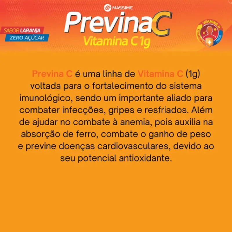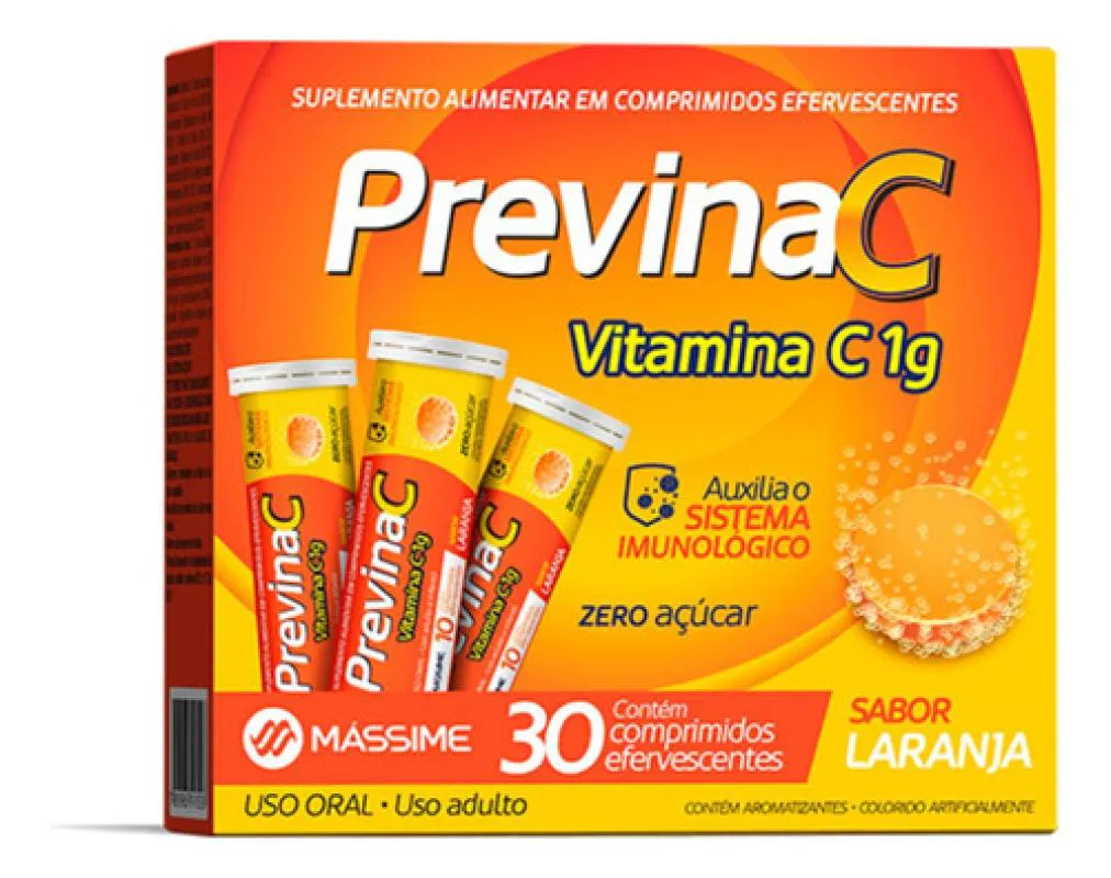 Previna C Vitamina C Efervescente 30Cpr sem Açucar - Laranja