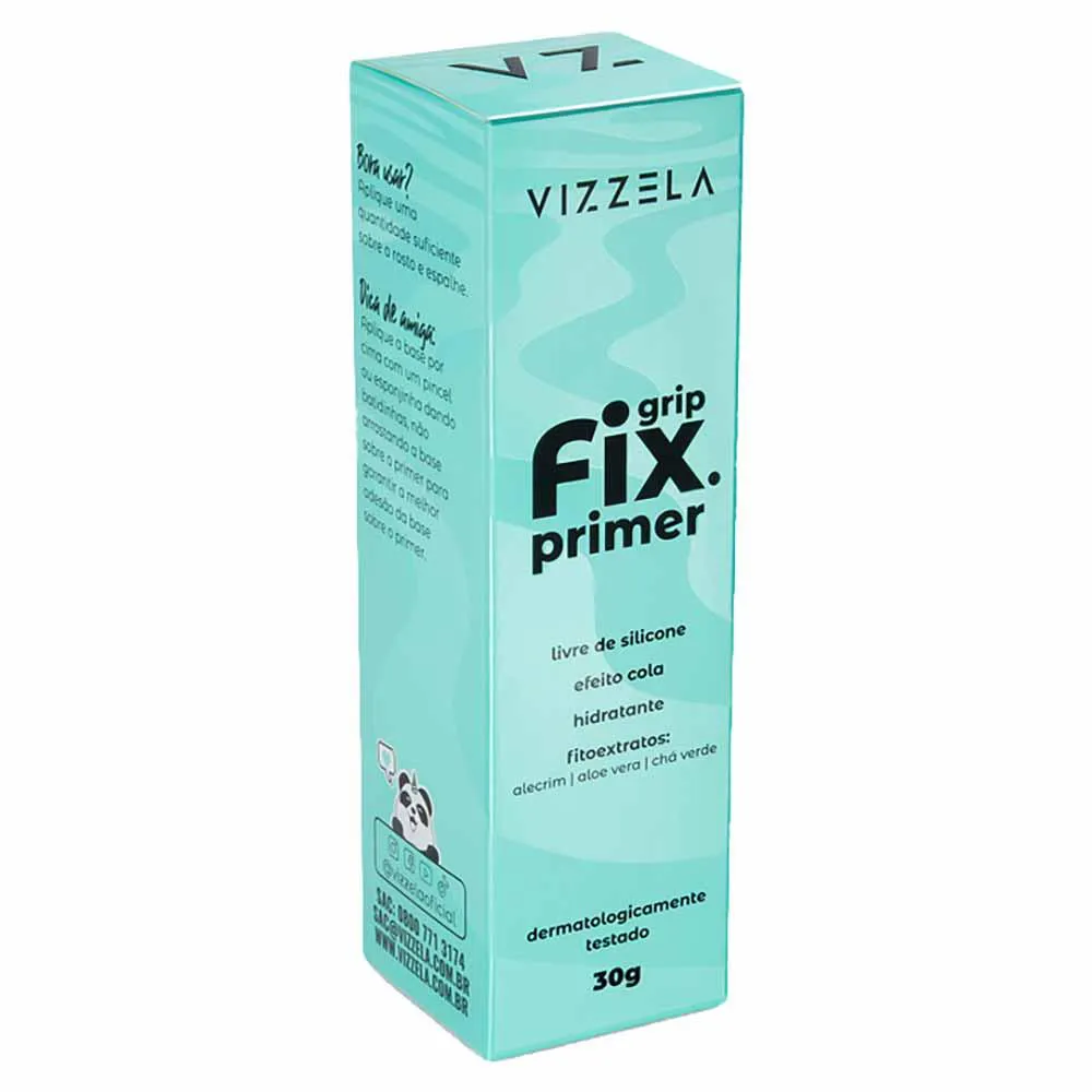 O Primer Facial Hidratante Vizzela Grip Fix possui uma tecnologia de adesão na pele (efeito cola) garantindo maior aderência da maquiagem. O primer garante uma pele mais hidratada e promove um efeito tensor ajudando a deixar o acabamento da maquiagem mais bonito. Com uma formulação refrescante e leve livre de silicones.