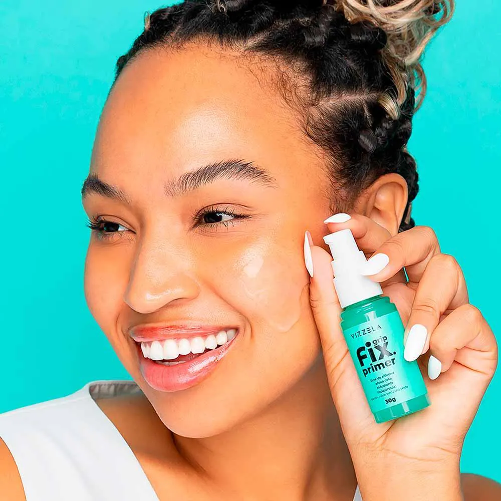 O Primer Facial Hidratante Vizzela Grip Fix é indicado para melhorar a duração e aderência da maquiagem, e minimizar o ressecamento e/ou craquelamento da pele com maquiagem.