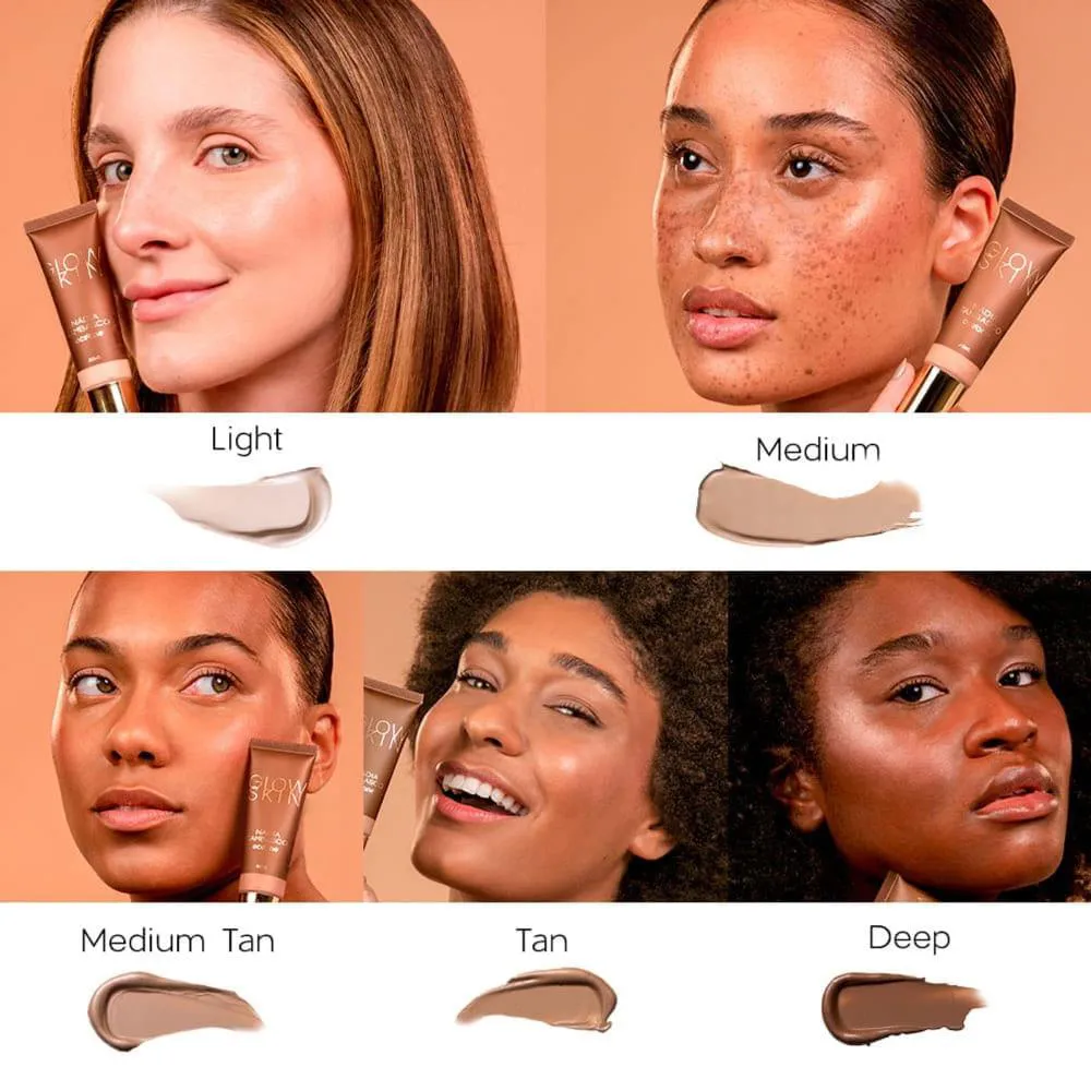 O Glow Skin é indicado para todas as pessoas, independentemente do tipo de pele. Com ele, você consegue aquela pele com efeito natural e iluminado todos os dias.