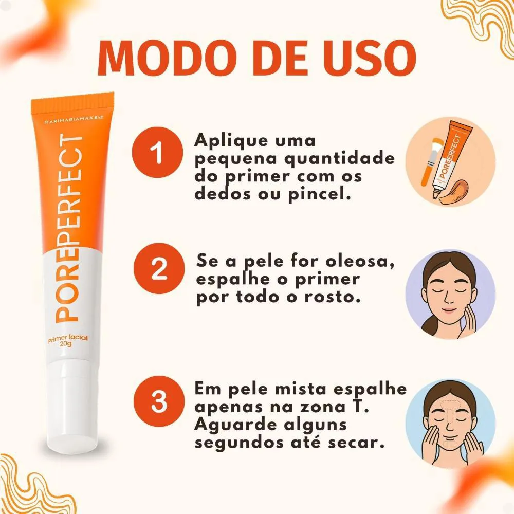 Após a limpeza da pele, aplique o Primer Pore Perfect em todo os rosto (pele oleosa) ou apenas na zona T (pele mista). Deixe o primer secar completamente antes de aplicar a base e outros produtos de maquiagem.Anvisa: 25351..092651/2025-50