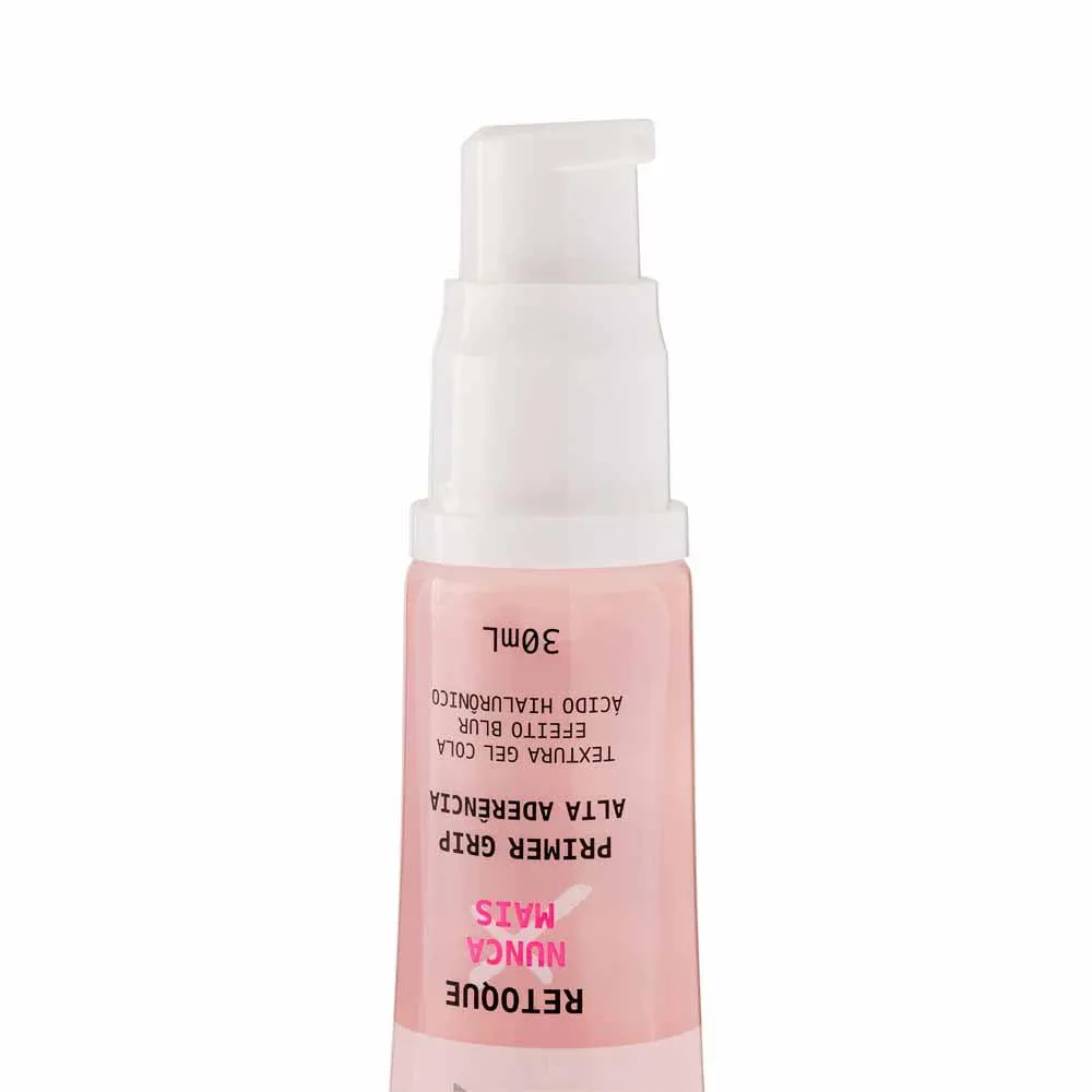 O Primer Grip Alta Aderência, possui textura gel cola que gruda a maquiagem na pele, garantindo alta durabilidade.
