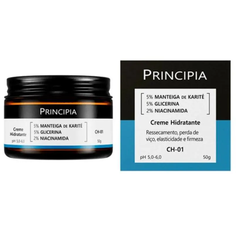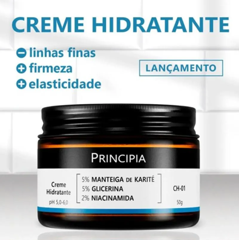 O Principia Creme hidratante CH-01 é um dermocosmético desenvolvido para promover hidratação intensa, firmeza e elasticidade da pele. Sua fórmula contém uma combinação potente de 5% de manteiga de karité, 5% de glicerina e 2% de niacinamida, ativos reconhecidos por sua eficácia no fortalecimento da barreira cutânea e no aumento do viço. Indicado para uso diário, é ideal para quem busca pele hidratada, macia e com aparência mais saudável.