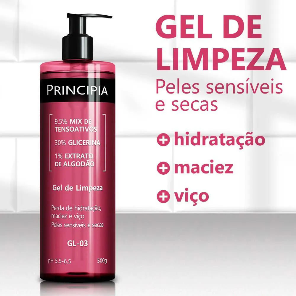 Principia, Gel de Limpeza Hidratante 9,5% Tensoativos + 30% Glicerina + 1% Extrato de Algodão Gl-03 Com 500G