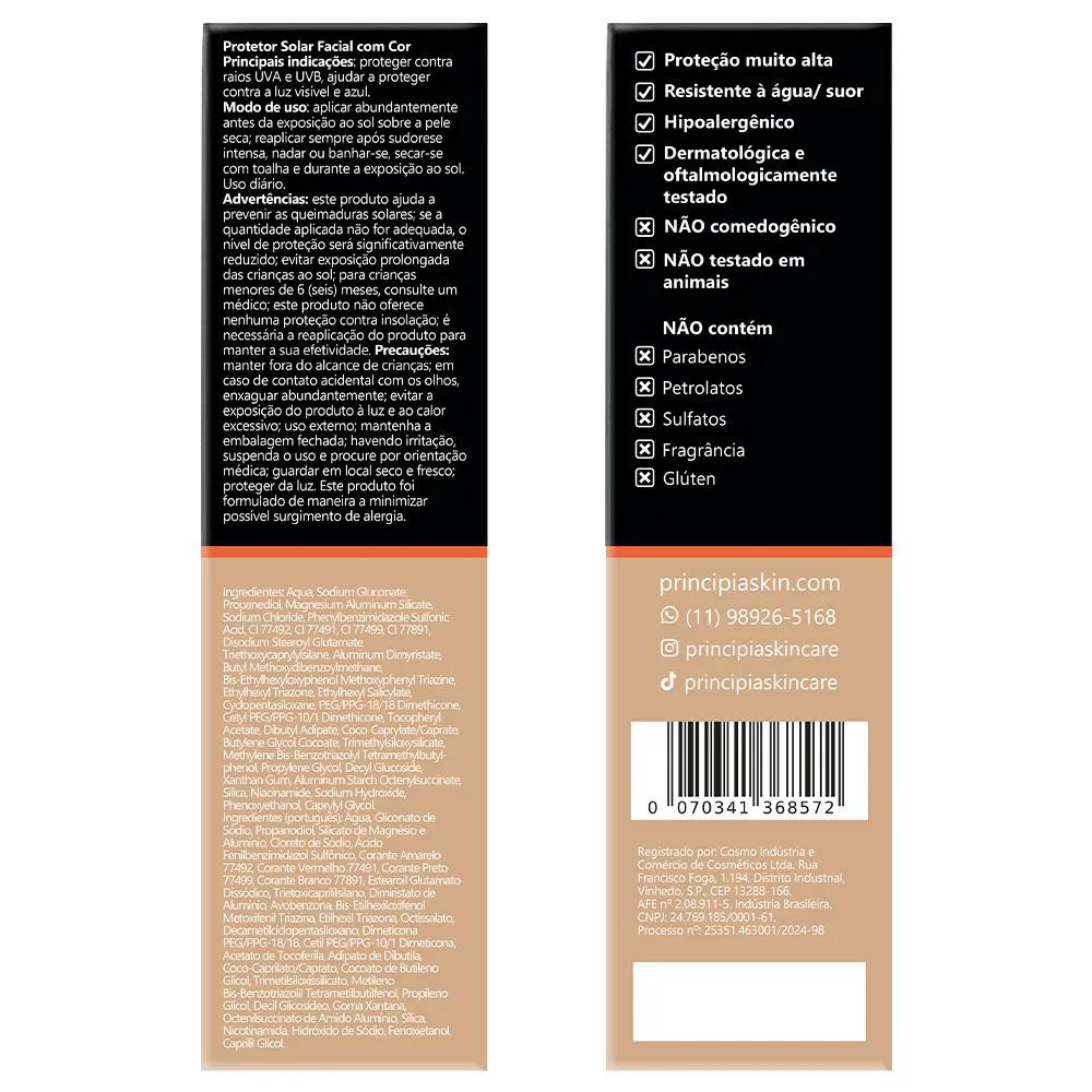 Principia, Protetor Solar 14,5% Mix de Filtros Uv + 5% Niacinamida Fps 70 Ps-05 Cor 2.0 com 30Ml