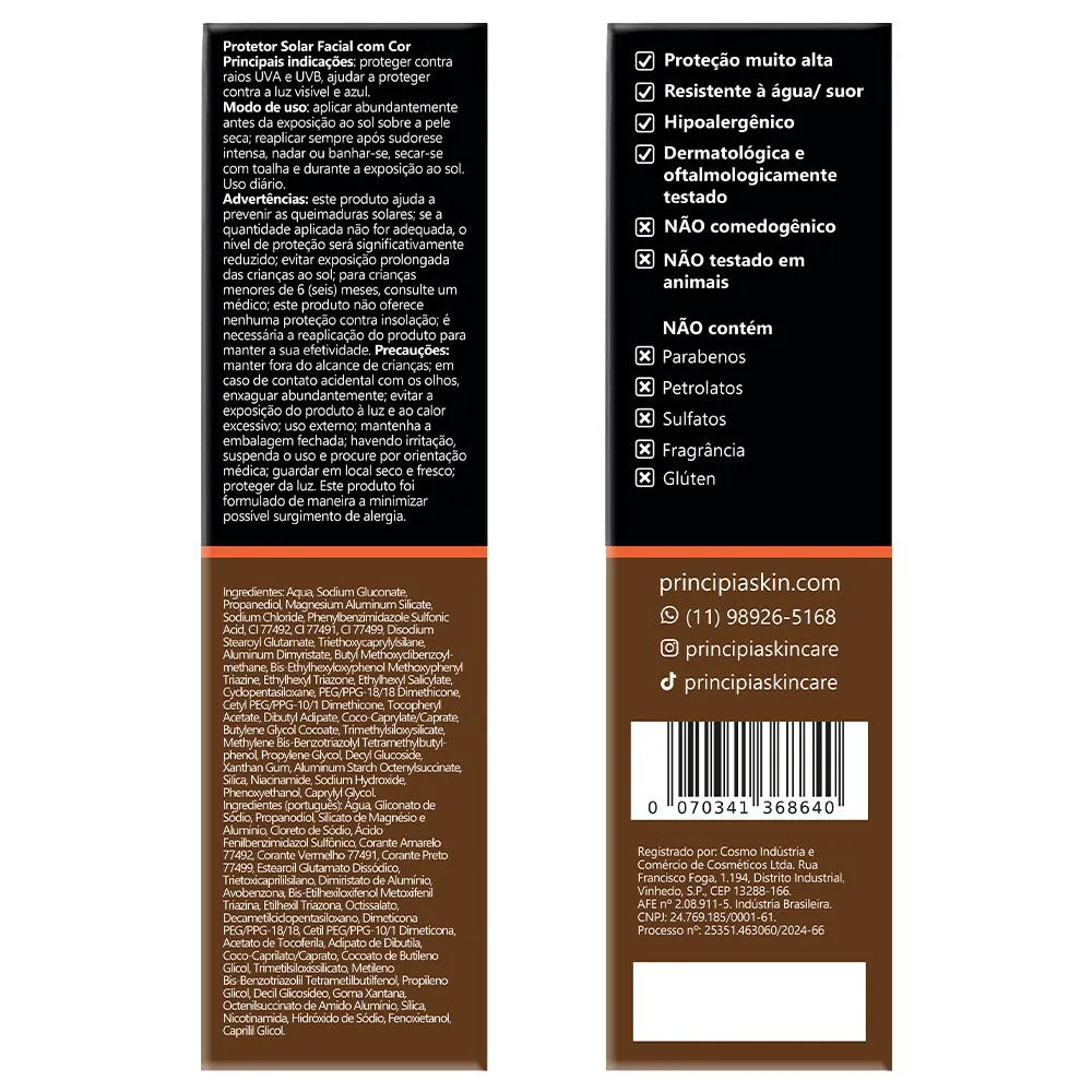 Principia, Protetor Solar 14,5% Mix de Filtros Uv + 5% Niacinamida Fps 70 Ps-05 Cor 9.0 com 30Ml