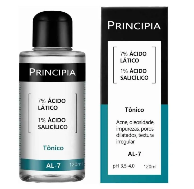 O Principia Tônico Facial Al-7 é um tônico facial com alta concentração de Ácido Lático (7%) e Ácido Salicílico (1%), desenvolvido para tratamento e cuidados com a pele. Sua fórmula é específica para controlar a oleosidade, melhorar a textura da pele, reduzir a incidência de acne, remover impurezas e minimizar o tamanho dos poros.