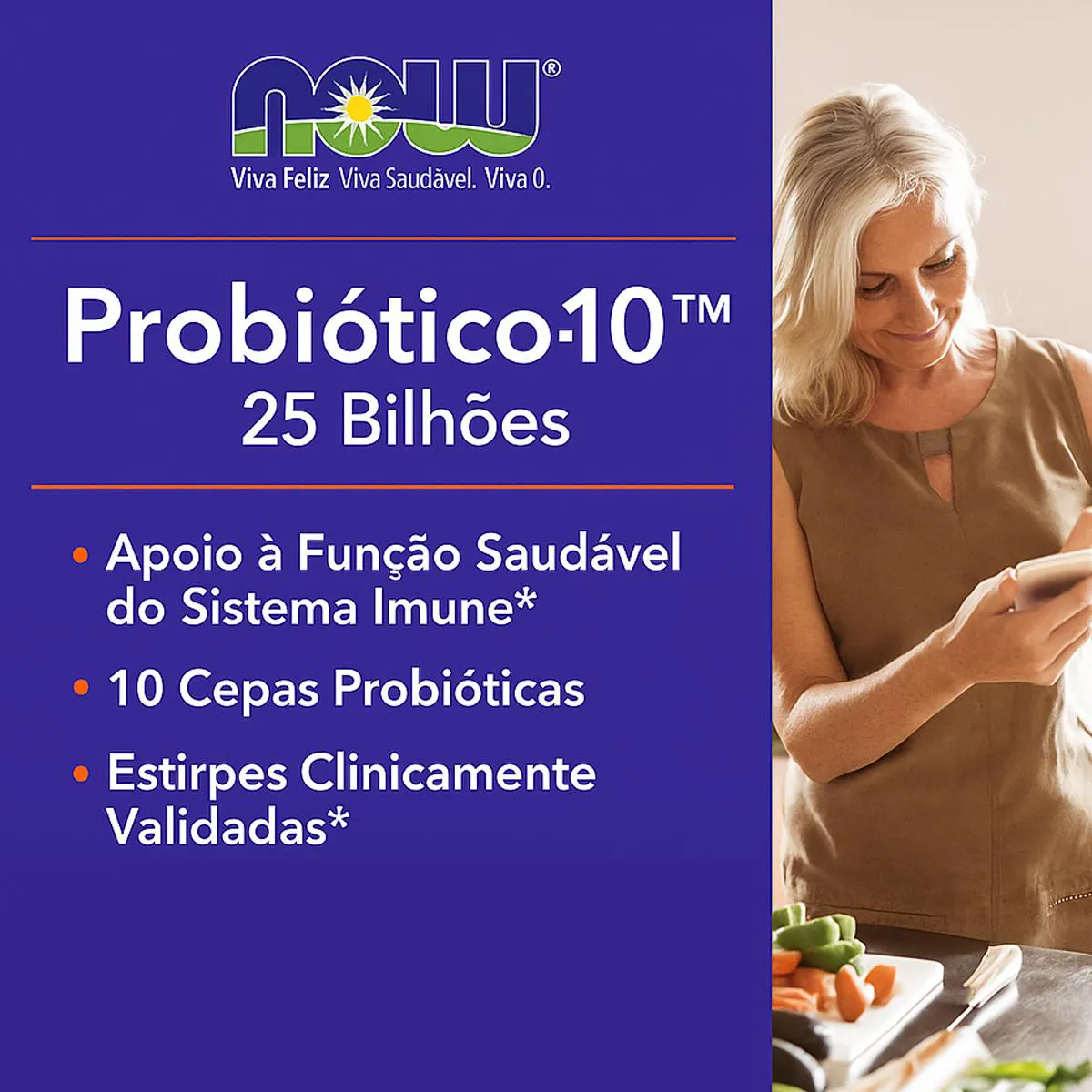 Probiótico 10, 25 Bilhões, 50 Cápsulas Vegetais Now Foods