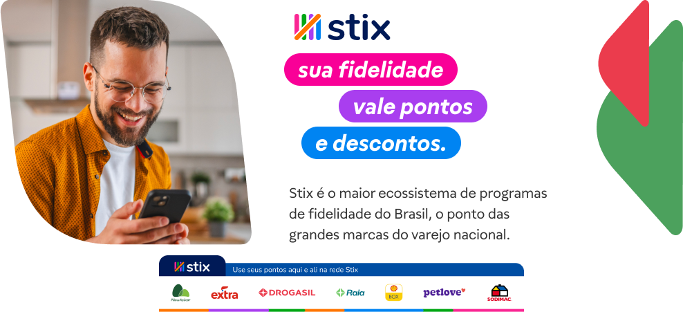 Pontos stix é a moeda do Programa Mais Saúde. O cliente junta pontos stix por meio de suas compras na Raia e Drogasil e/ou parceiros da coalizão, e pode trocar por produtos, vale-compras e descontos no caixa. A participação no Programa Mais Saúde, habilitará o cliente a participar do Programa stix, mas é necessário que o próprio cliente conclua o seu cadastro na stix e aceite os termos do regulamento do programa. As regras de privacidade aplicáveis ao Programa stix estão disponíveis em www.soustix.com.br/aviso-de-privacidade.