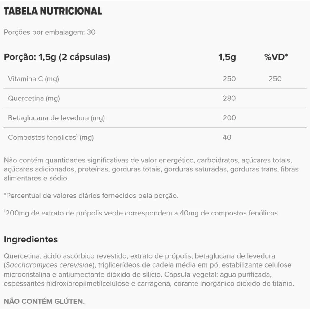 - 200 mg de extrato de própolis verde padronizado em 20% de compostos fenólicos;