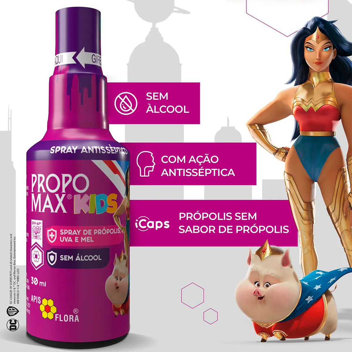 O Propomax Kids é um spray antisséptico de própolis sem álcool, desenvolvido especialmente para crianças.