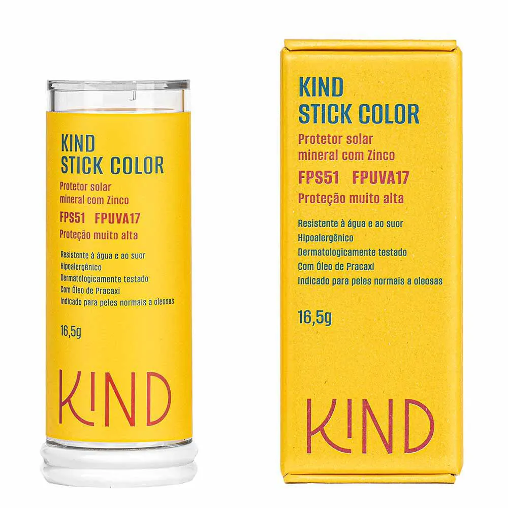 Proteção Solar Facial Kind Beauty Stick Color FPS 51 e FPUVA 17O que é e para que serve?Kind Stick Color é um protetor solar mineral, com FPS 51 e FPUVA 17 e com cor que também funciona como maquiagem facial.