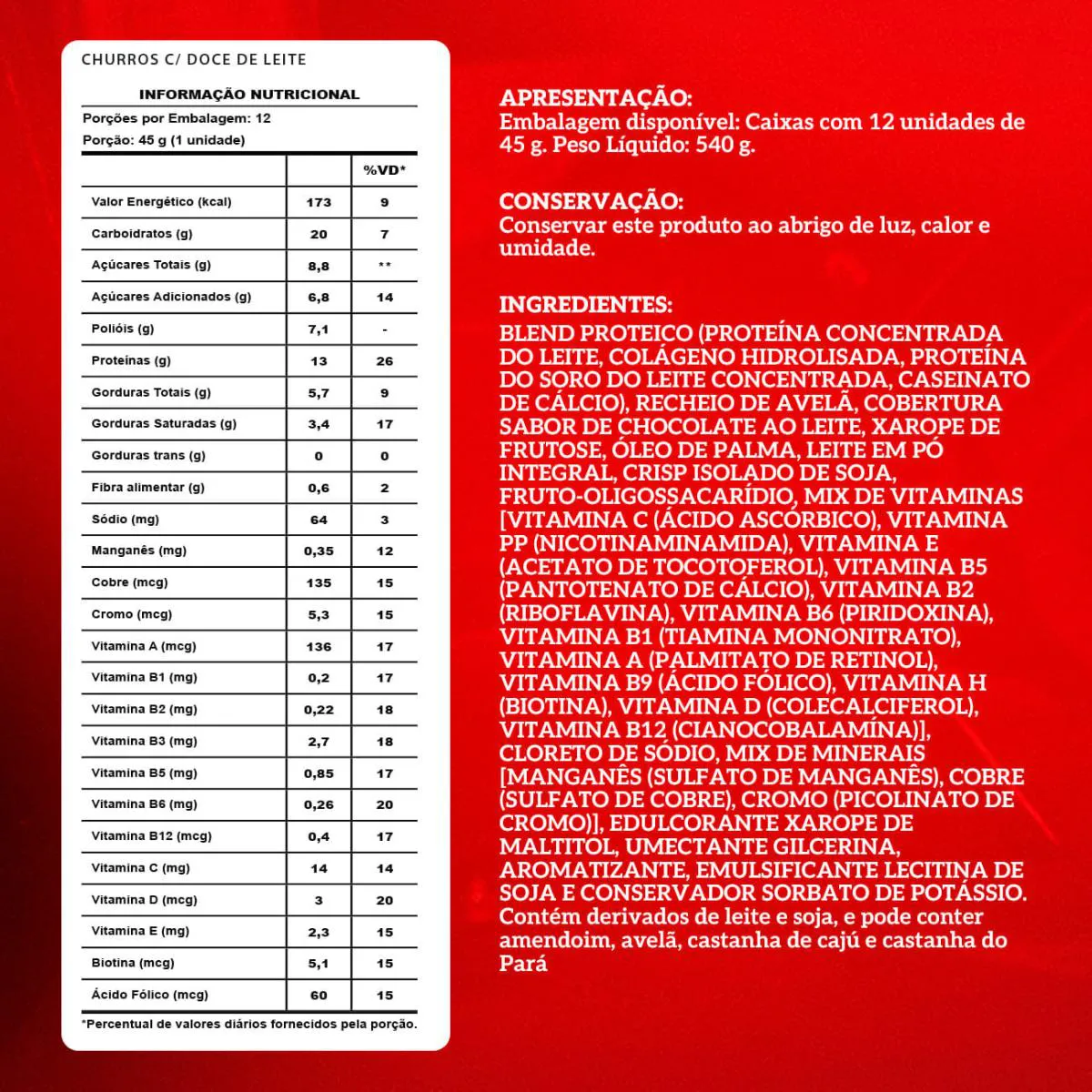 Sabor:churros c/ doce de leite