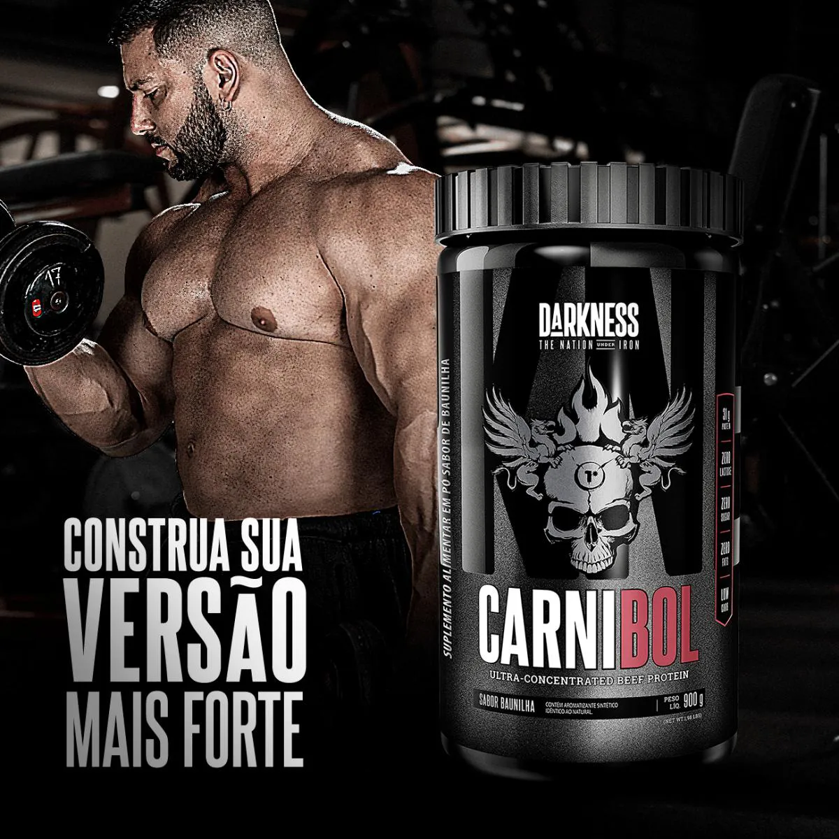 Ganhos insanos de força e massa muscular com o suplemento Carnibol da Darkness. Sua fórmula traz um blend exclusivo de proteína isolada de carne bovina da melhor qualidade e peptídeos de colágeno (ProMyoBlend®), com um excelente aporte nutricional aos monstros de verdade que buscam crescimento.