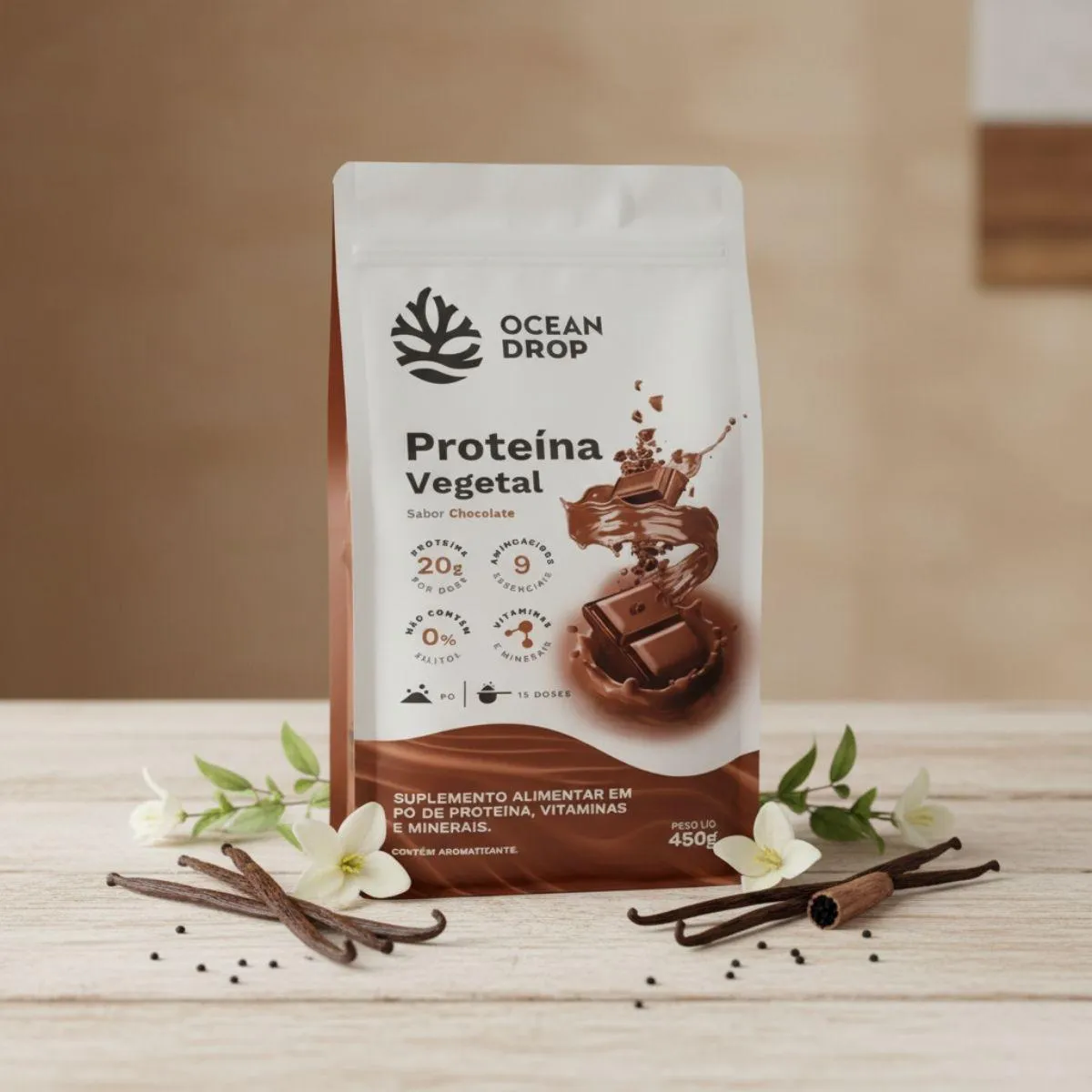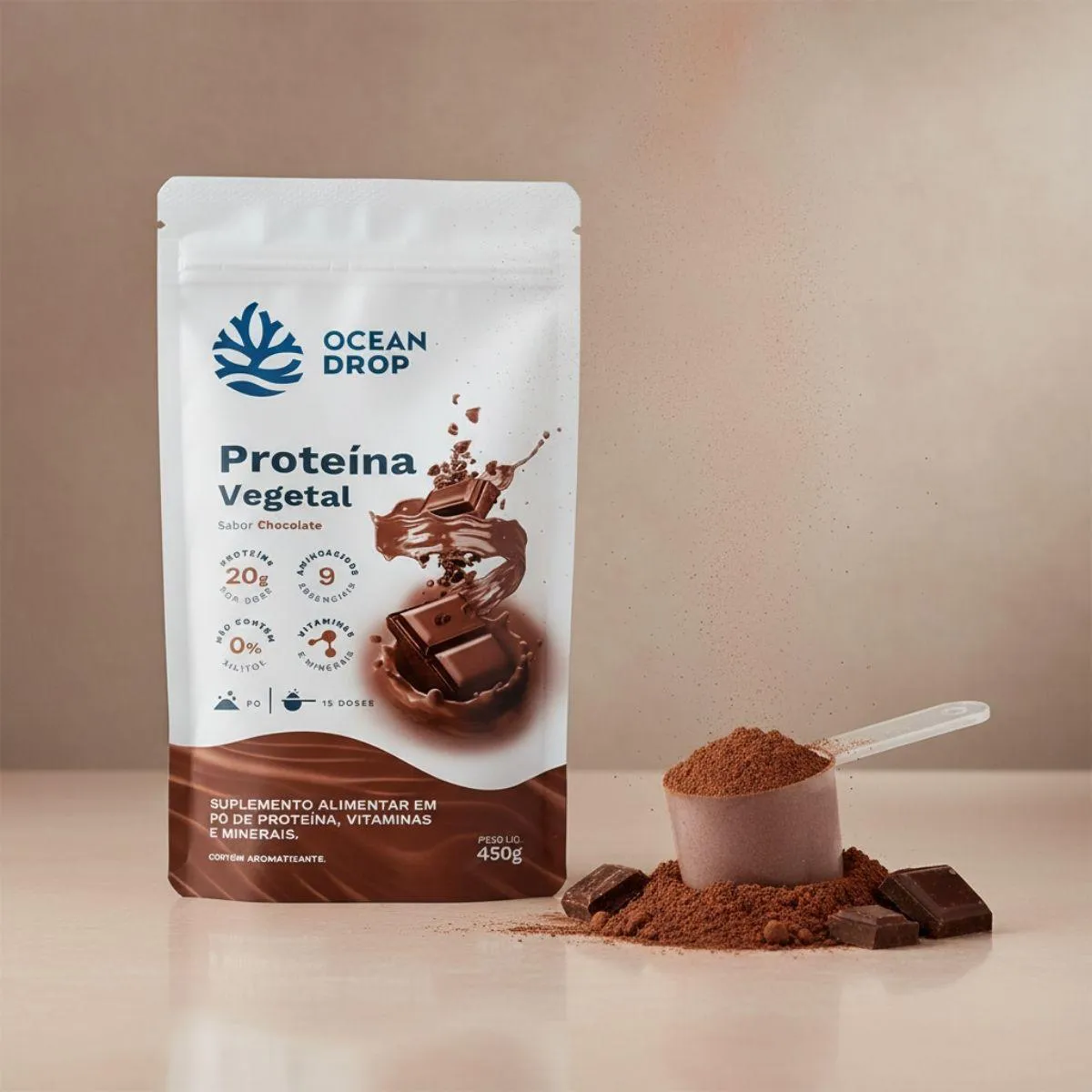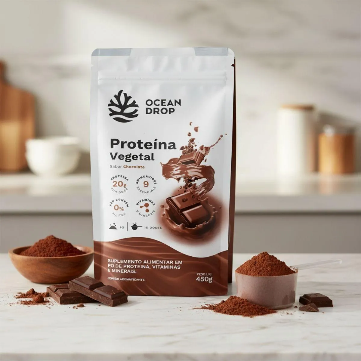 Palavras-chave estratégicas: proteína vegetal, suplemento vegano, plant based, rotina equilibrada, nutrição natural, bem-estar diário, clean label, Ocean Drop.