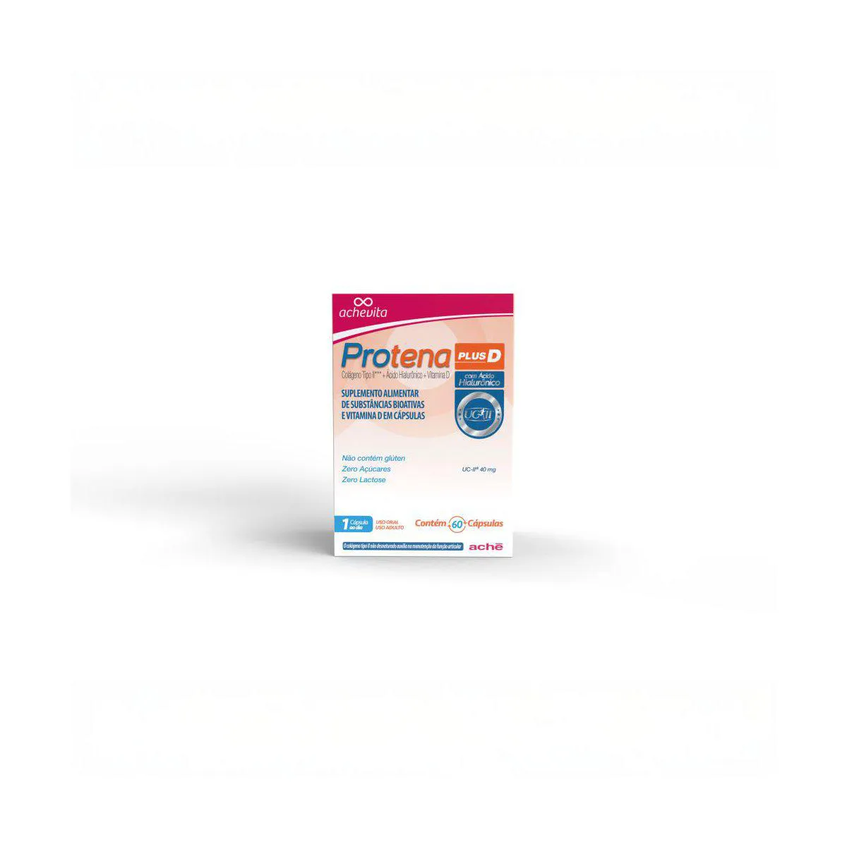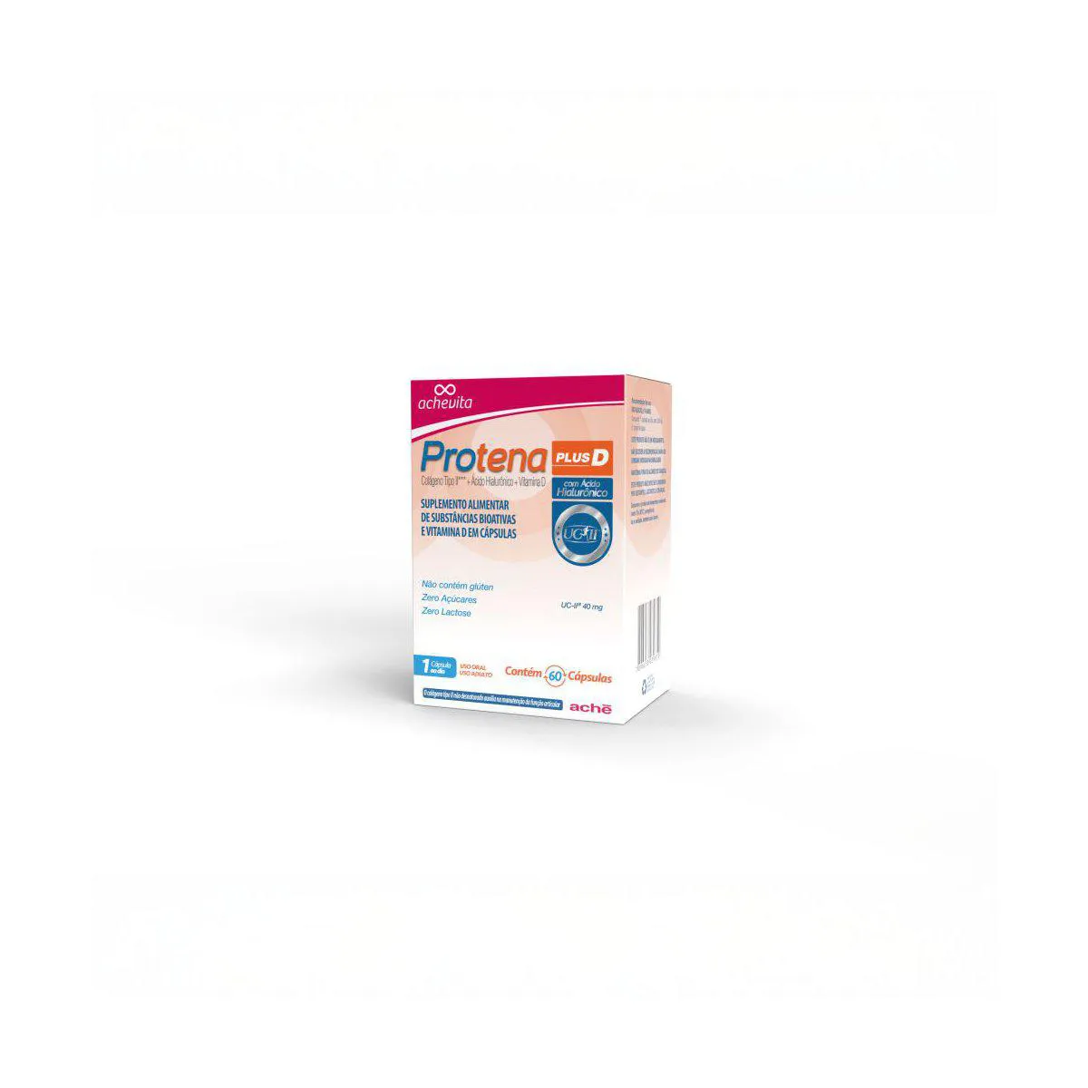 O Protena Plus D é um suplemento alimentar em cápsulas formulado com UCII 40mg (colágeno Tipo II), Ácido Hialurônico e vitamina d 1.000UI.