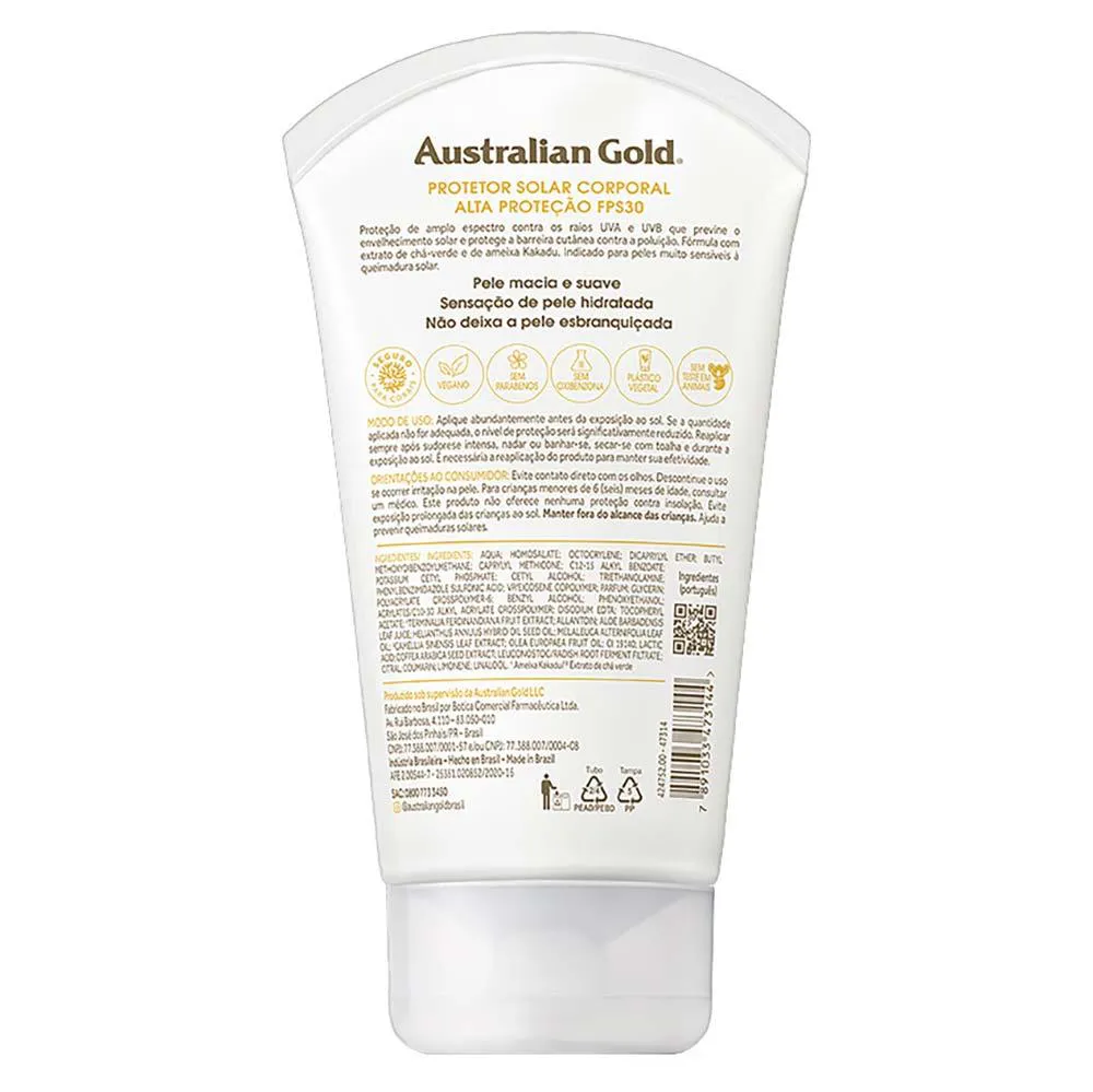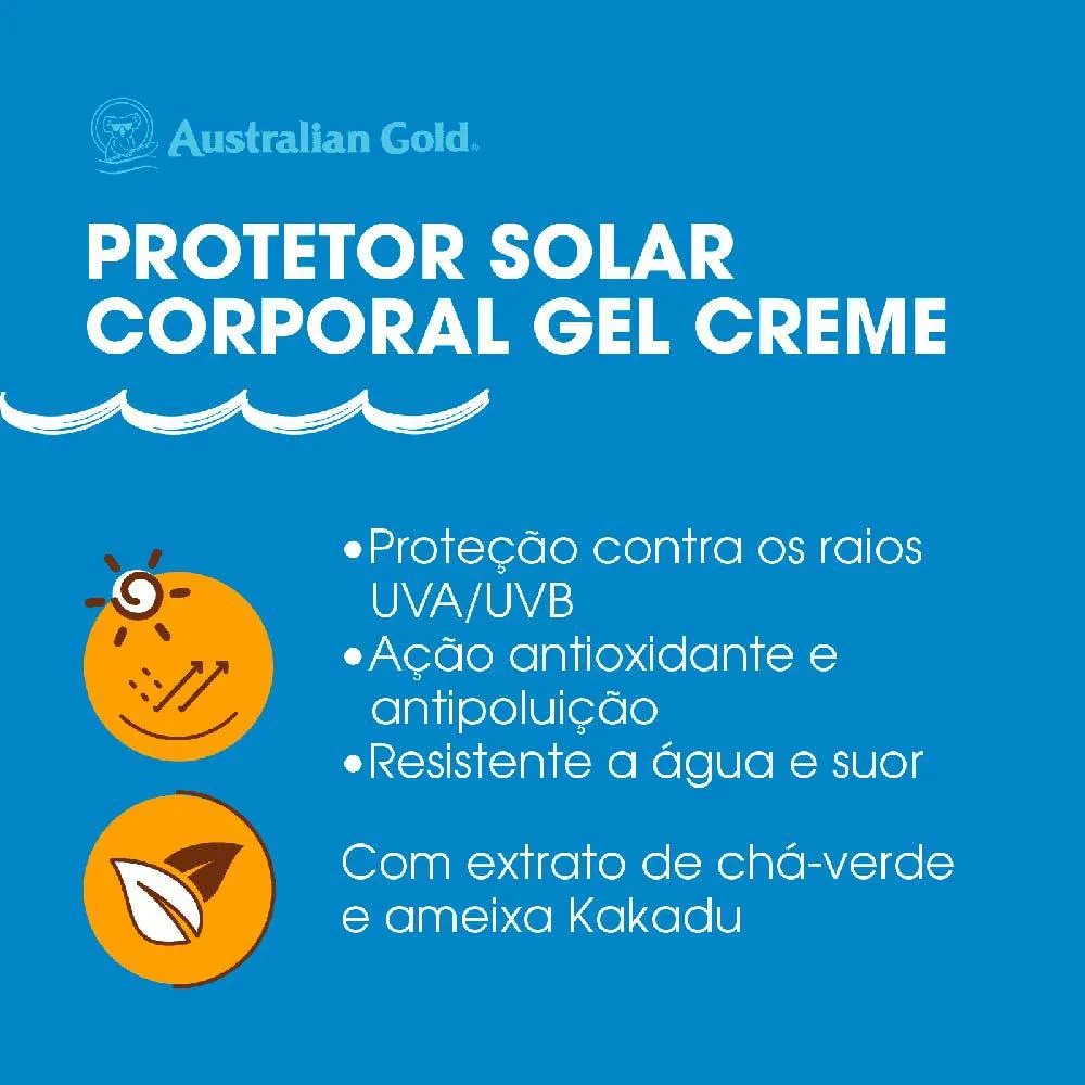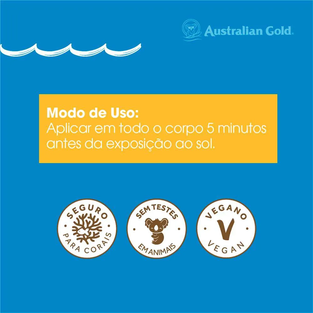 Considerada uma das líderes no mercado mundial de bronzeadores e protetores solares, a Australian Gold elabora seus produtos a partir da exclusiva fórmula Biosine Complex. Desenvolvida pelo The Australian Gold Institute, essa combinação de vitamina e, panthenol, aloe vera e extratos herbais australianos previne o envelhecimento e o ressecamento da pele, garantindo assim um bronzeado seguro e prolongado.