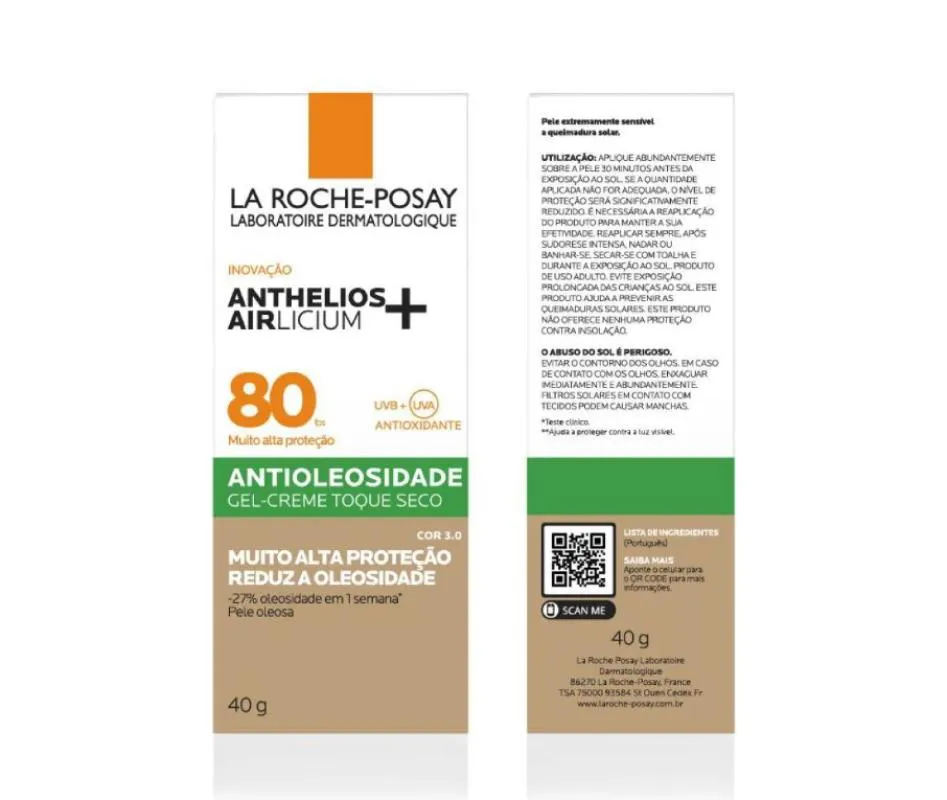 O Protetor Solar Facial La Roche-Posay Anthelios Airlicium FPS80 possui uma textura fluida, ultra leve, de rápida absorção, não pesa, não escorre, não craquela e não deixa uma aparência pegajosa. Além disso, confere alta proteção solar e contra pigmentação causada pela luz visível.