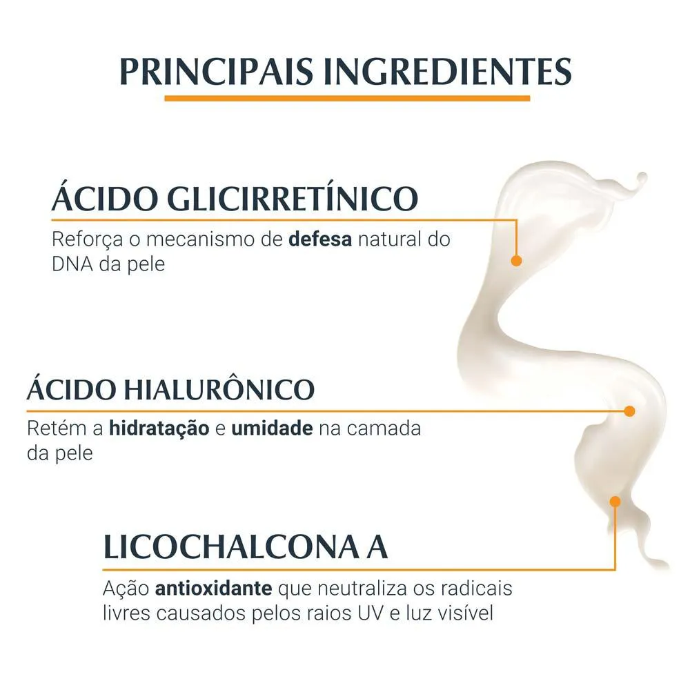 Este protetor solar é mais do que um simples filtro contra raios solares. Ele integra ativos avançados como o Ácido Glicirrétinico, conhecido por suas propriedades reparadoras do DNA da pele danificado pela exposição solar.