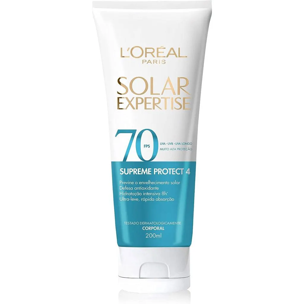 O Protetor Solar L'Oréal Expertise Supreme Protect 4 FPS70 proporciona alto poder de proteção contra a radiação ultravioleta UVA e UVB além de hidratar a pele.