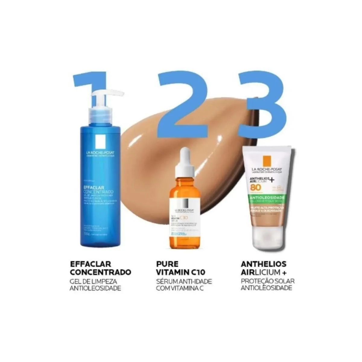 Anthelios Airlicium+ FPS80 possui um benefício que vai além do controle de oleosidade durante o uso, oferecendo um tratamento de redução da oleosidade em apenas uma semana (-27% oleosidade em 1 semana / -56% oleosidade em 4 semanas).