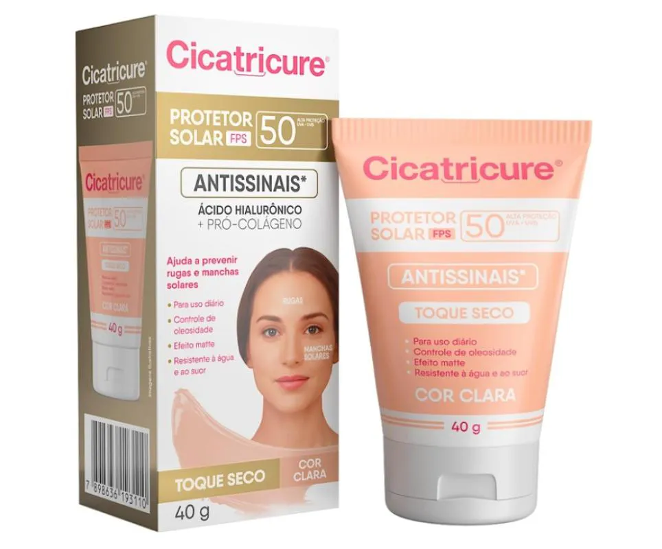O Protetor Solar Facial Cicatricure Fps50 Cor Clara é um produto de proteção solar com fórmula avançada antissinais, desenvolvido para cuidados faciais. Sua composição inclui partículas absorvedoras de oleosidade e oferece proteção solar com FPS 50.