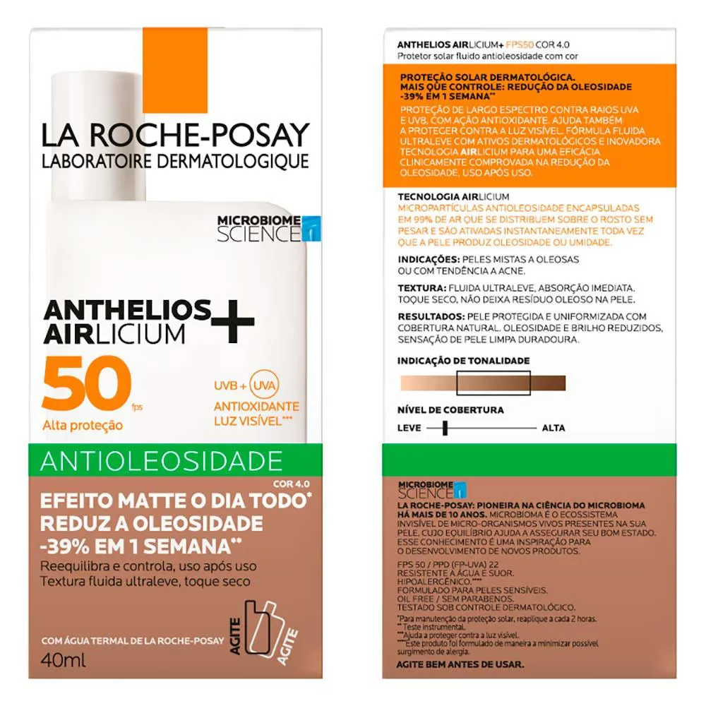 Protetor Solar Facial com Cor La Roche-Posay Anthelios Airlicium+ Fluido Fps50 40