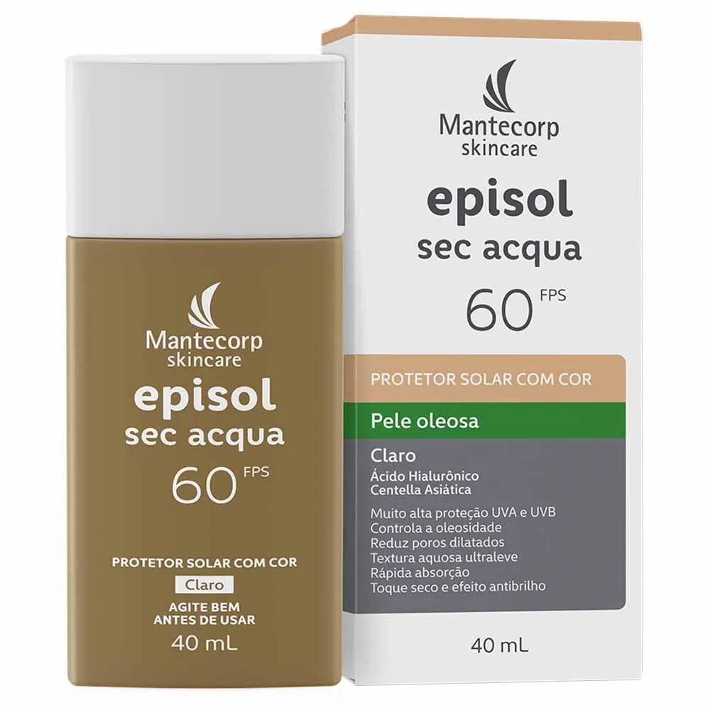 Protetor Solar Facial com Cor Mantecorp Skincare Episol Sec Acqua Fps 60 Claro