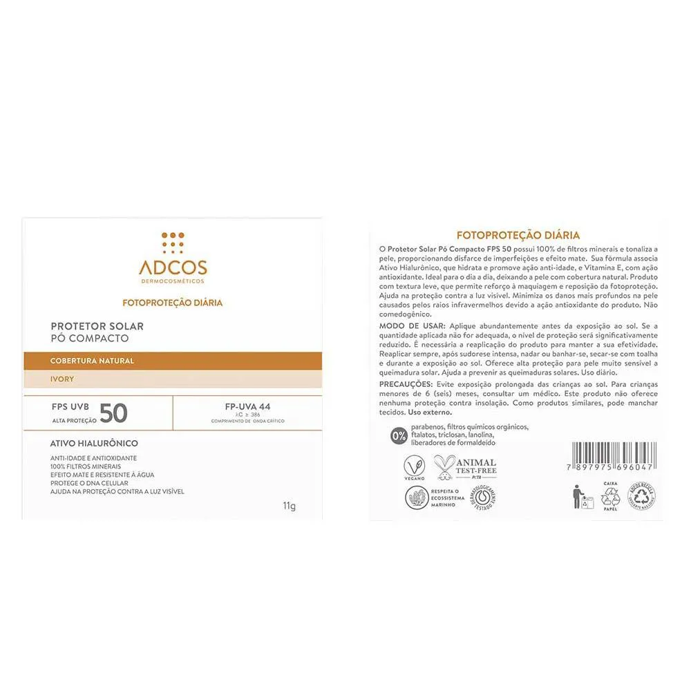 Protetor Solar Facial em Pó Adcos Fotoproteção Diária Fps50 Ivory