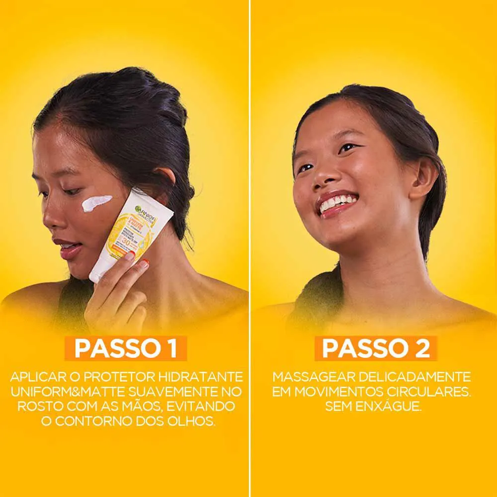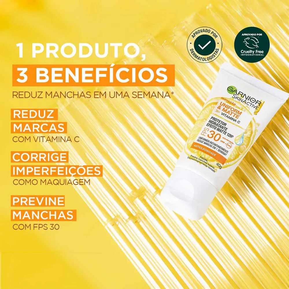 Protetor Solar hidratante Facial, Efeito Matte FPS30, Uniformiza e Controla o Brilho com vitamina c, Garnier Uniform & Matte