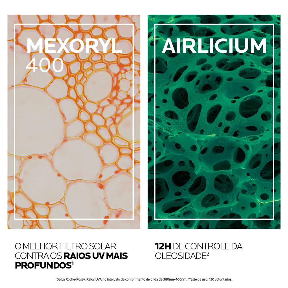 Ideal para peles oleosas, este protetor solar também incorpora a exclusiva tecnologia antioleosidade Airlicium, garantindo um controle eficiente da oleosidade por até 12 horas enquanto oferece uma textura ultrafluida e invisível.