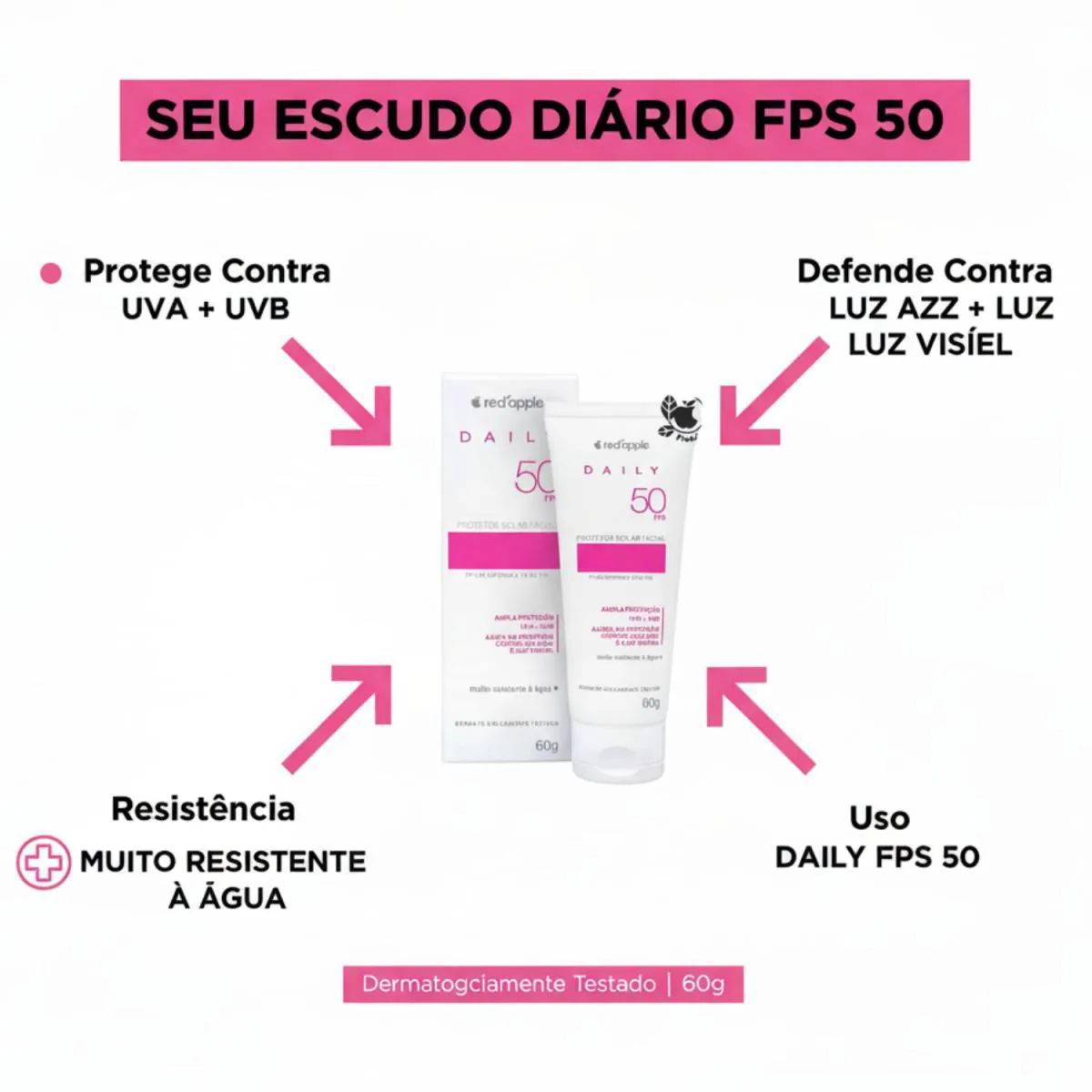 Protetor Solar Facial Red Apple 60g FPS 50 Daily – Red Apple