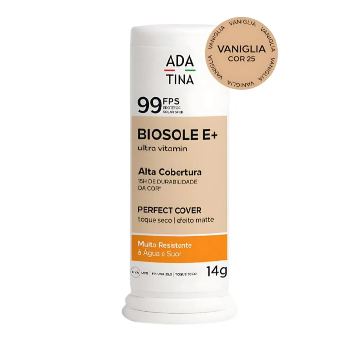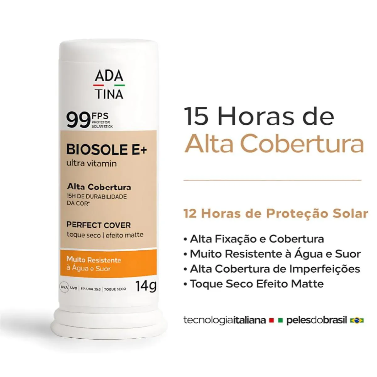 Biosole E+ Ultra Vitamin FPS 99 Stick é um protetor solar com cor, com 15 horas de alta cobertura e durabilidade da cor, muito resistente à água e suor, especialmente indicado para peles mais sensíveis ao Sol. Possui alta cobertura contra as imperfeições, alta fixação, alta durabilidade, baixa transferência, toque seco e acabamento matte.