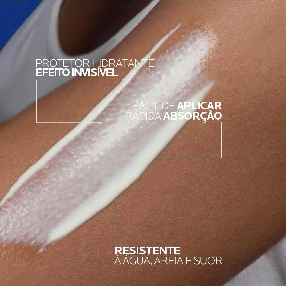 Ele combina a inovadora tecnologia Mexoryl 400 - o único filtro UV capaz de oferecer proteção contra os raios UVA ultralongos, que penetram profundamente na pele - com ingredientes ativos como vitamina e e Manteiga de Karité.
