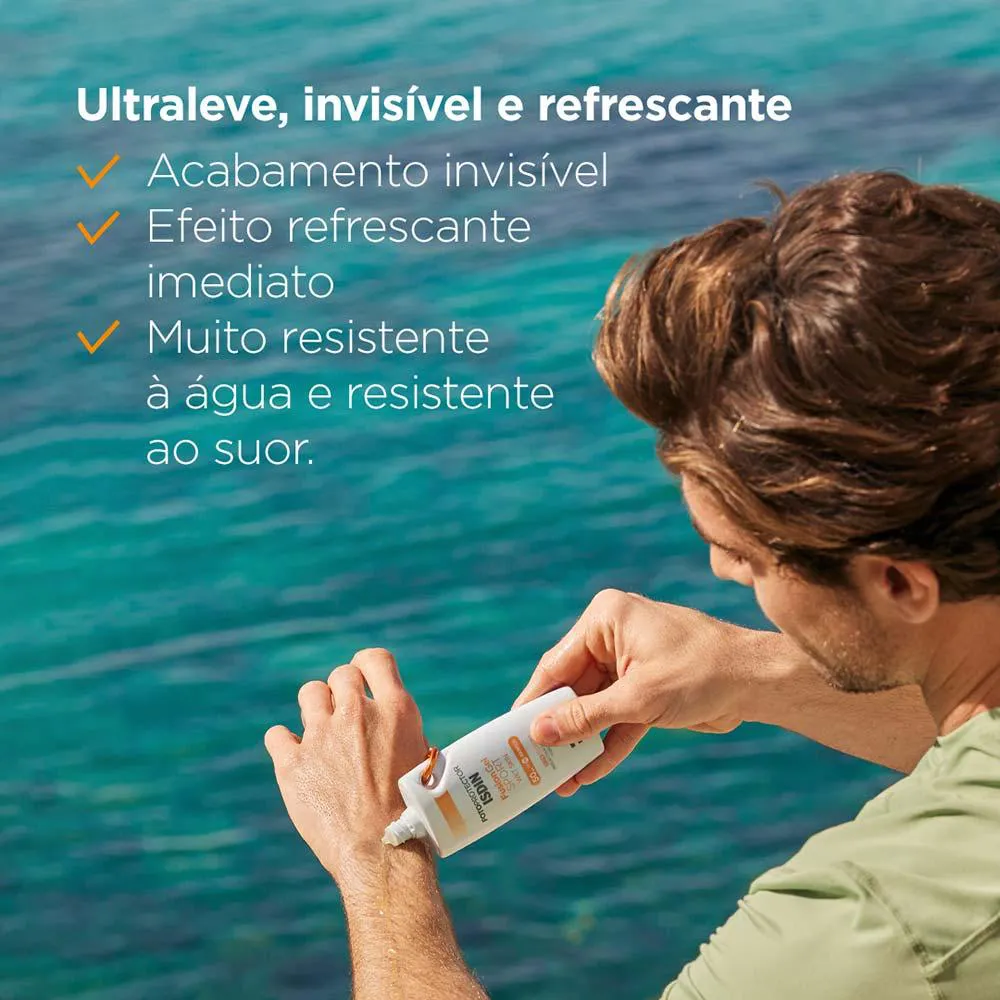- Textura em gel, que oferece um efeito refrescante imediato enquanto protege a pele sem deixar resíduo oleoso, oil-free.