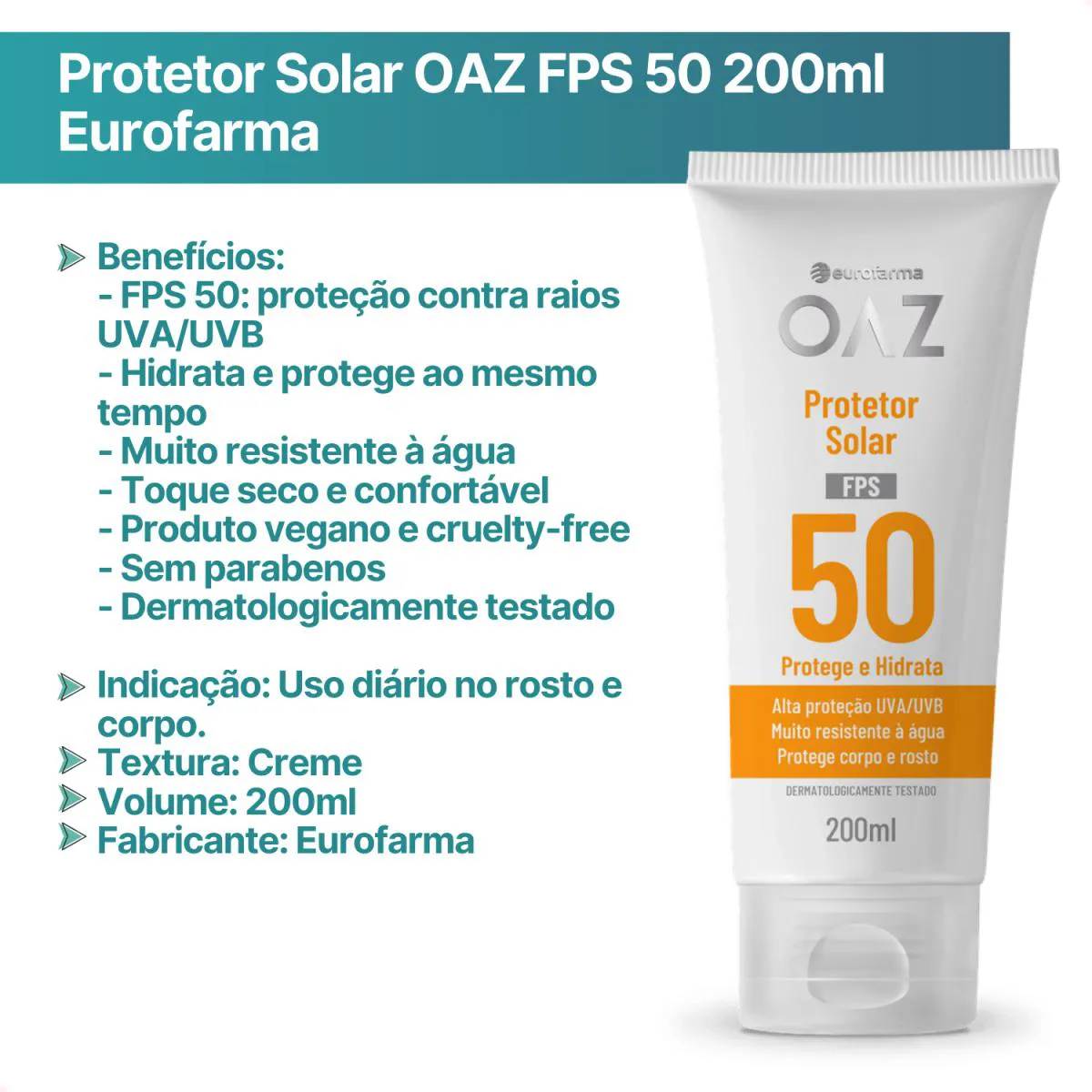 Protetor Solar Oaz Fps 50 200Ml Eurofarma Protege e Hidrata