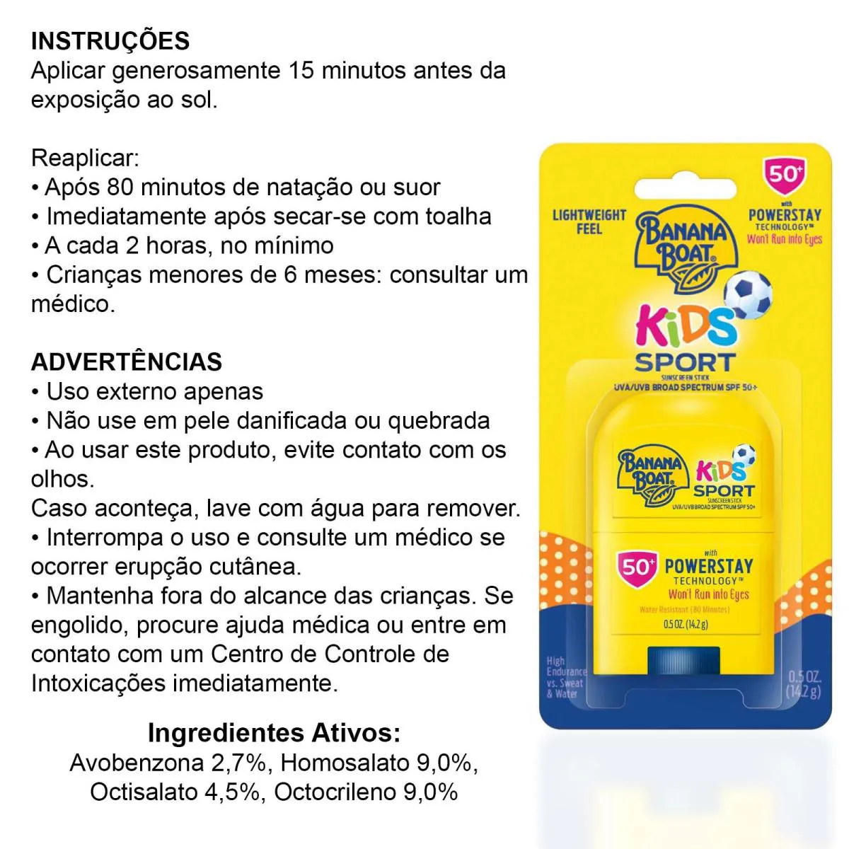O Protetor Solar infantil Stick FPS 50 Banana Boat Kids Sport foi desenvolvido para proteger a pele das crianças durante atividades ao ar livre e práticas esportivas. Em formato stick, facilita a aplicação, oferecendo praticidade no dia a dia. Possui FPS 50 e proteção de amplo espectro contra os raios UVA e UVB. Sua fórmula é resistente à água e ao suor, ajudando a manter a proteção durante o uso conforme as orientações de reaplicação. Indicado para uso infantil, apresenta textura leve e não escorre nos olhos, proporcionando maior conforto durante a aplicação. Ideal para levar na mochila, viagens e momentos de lazer ao sol.