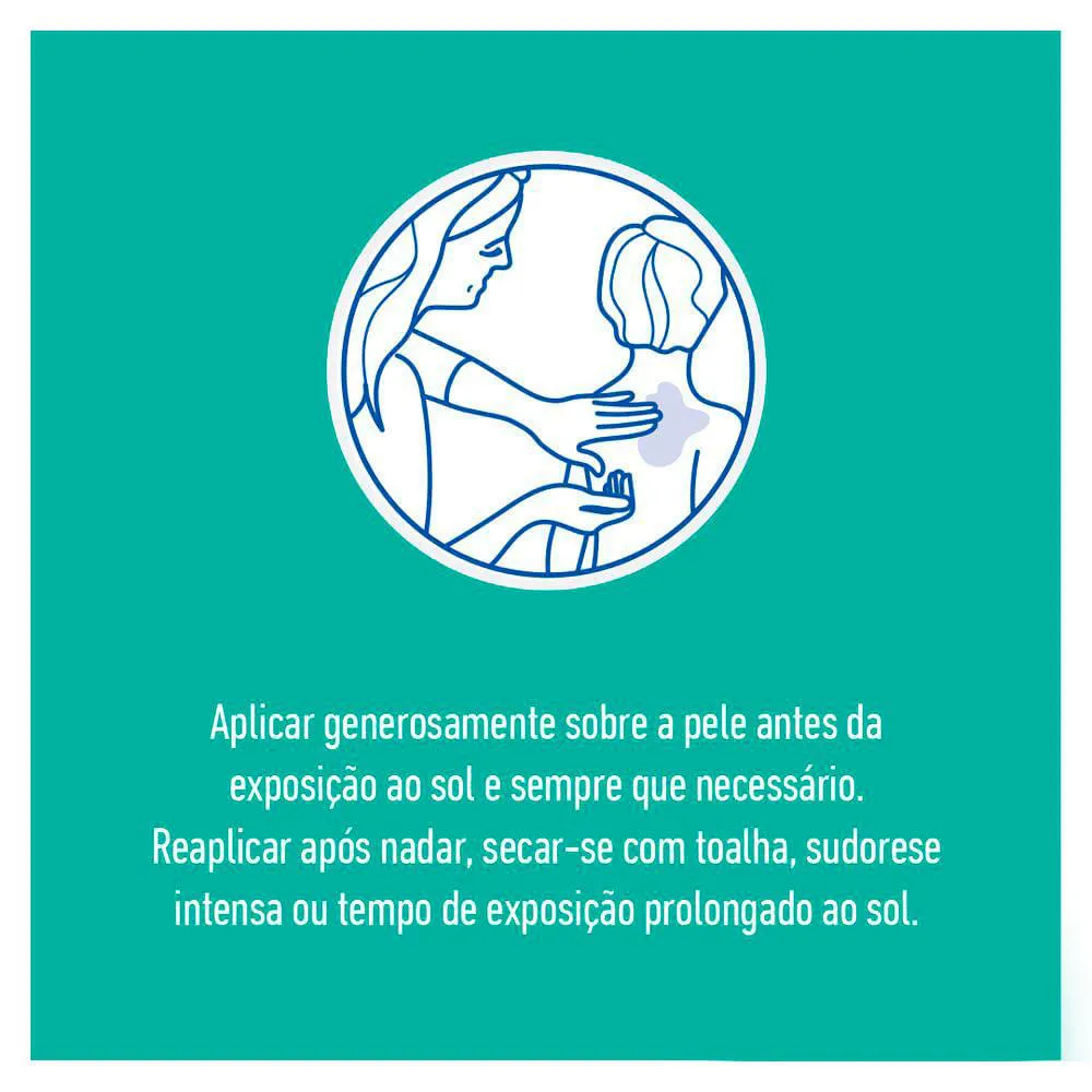 Aplique abundantemente antes da exposição ao sol. Reaplicar sempre após sudorese intensa, nadar ou banhar-se, secar-se com toalha e durante a exposição ao sol. É necessária a reaplicação do produto para manter a sua efetividade. Deve ser aplicado por um adulto ou sob sua supervisão.