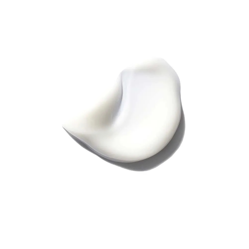 Atua como um protetor térmico de 230°C para cabelos expostos a ferramentas de modelagem e tem uma textura cremosa branca clara.