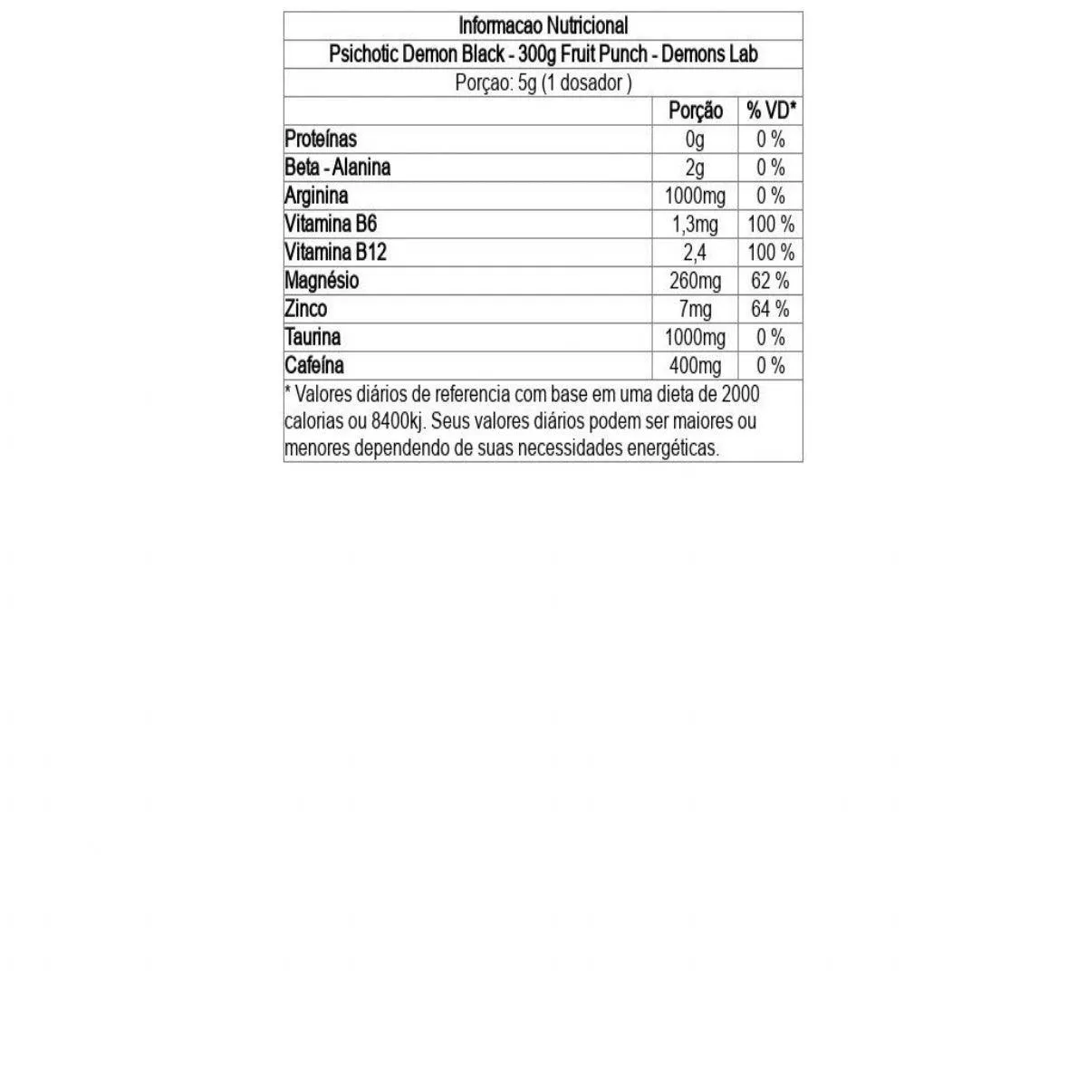 Beta alanina, L-Arginina, Taurina, Cafeína, Bisglicinato de Magnésio, Zinco Aspartato, Vitamina B6 (Cloridrato de Piridoxina), Vitamina B12 (Clanocobalamina), Aroma identico ao natural de frutas vermelhas, Corante vermelho de Beterraba, Acidulante Ácido Cítrico, Edulcorante Sucralose. NÃO CONTÉM GLÚTEN. ALÉRGICOS: PODE CONTER AMEMDOIM E DERIVADOS DO LEITE, DA soja E DO OVO. ...