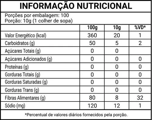 Receitas: Utilize em massas de pães, bolos e biscoitos para aumentar o teor de fibras.