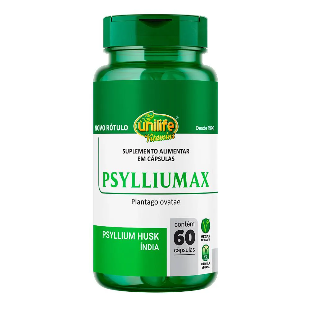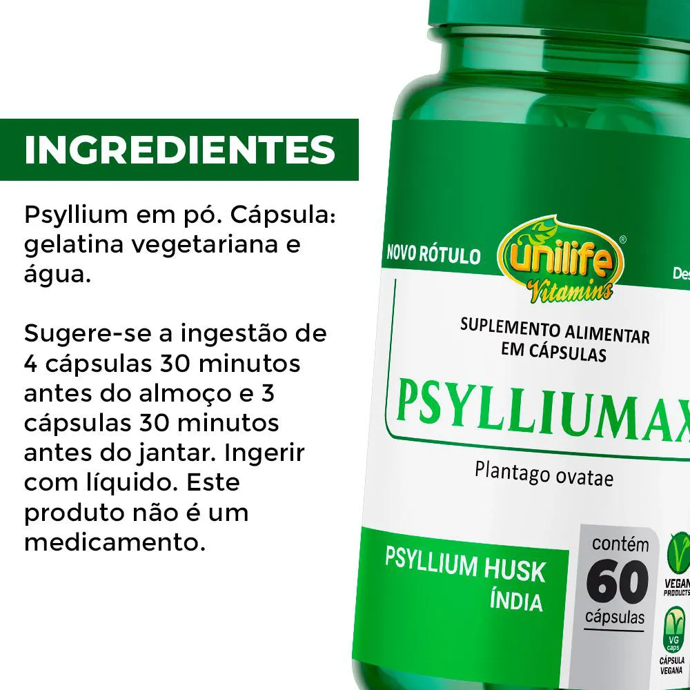 O Psylliumax da Unilife é composto por psyllium, uma fibra derivada de uma planta que é uma excelente adição para quem busca incrementar a ingestão diária de fibras. O produto é totalmente vegetal, ideal para vegetarianos e quem prefere suplementos à base de plantas. 2. Apresentação em Cápsulas