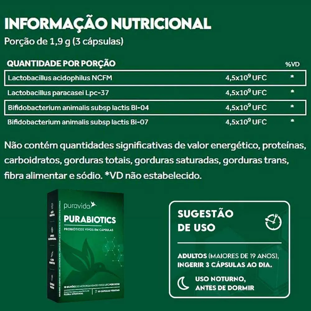 PURABIOTICS PROBIOTICOS VIVOS EM CAPSULAS (30 CAPSULAS) - PURA VIDA