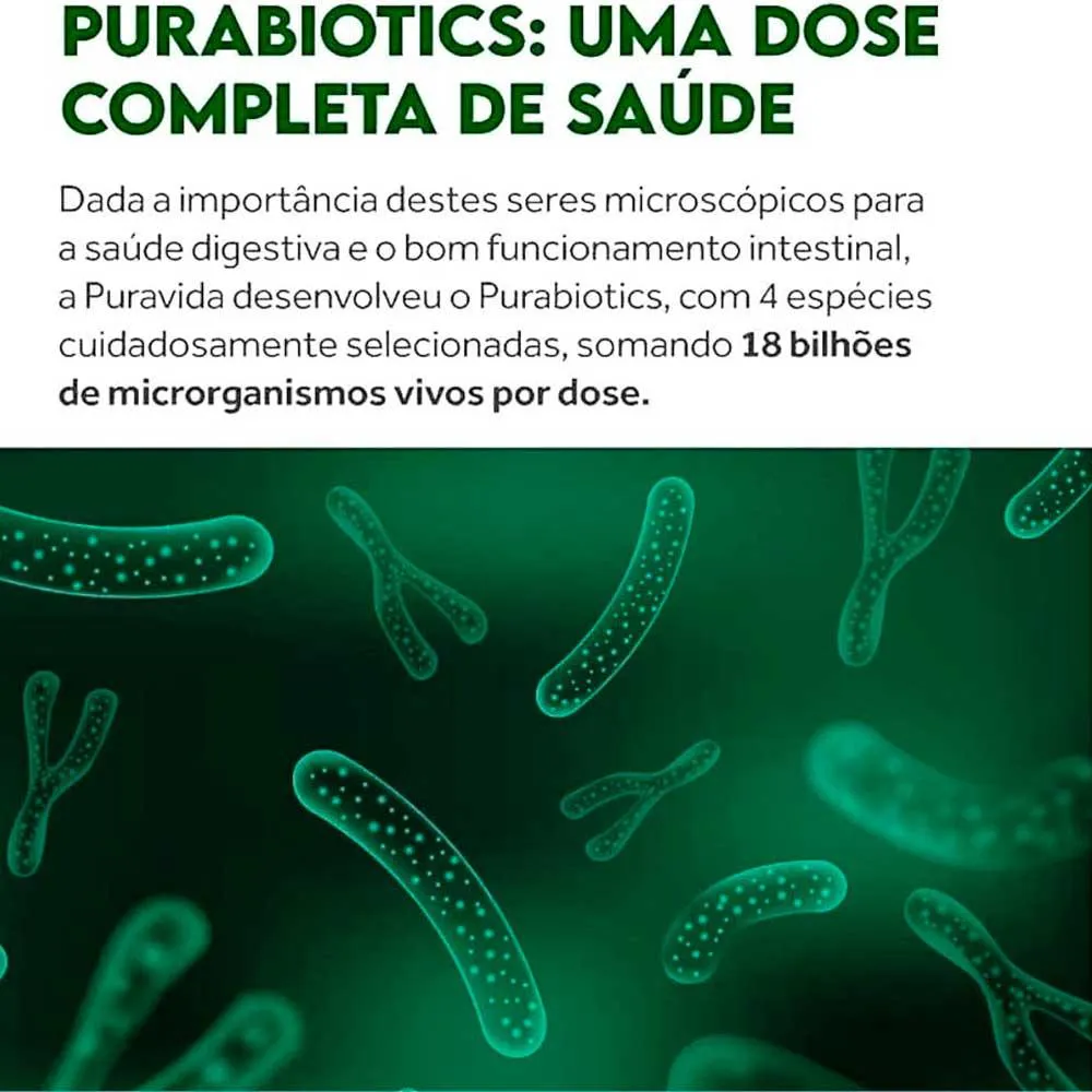Dada a importância destes seres microscópicos para a saúde digestiva e o bom funcionamento intestinal, a Puravida desenvolveu o Purabiotics, com 4 espécies cuidadosamente selecionadas, somando 18 bilhões de microrganismos vivos por dose.