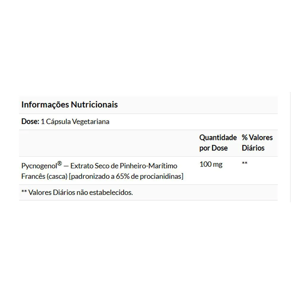 2. Cada cápsula fornece 100mg de Pycnogenol de alta qualidade, garantindo uma dosagem eficaz e padronizada. As Vcaps (cápsulas vegetarianas) são uma excelente escolha, livres de ingredientes de origem animal, adequadas para diversos estilos de vida e preferências nutricionais, um diferencial para sua busca orgânica.
