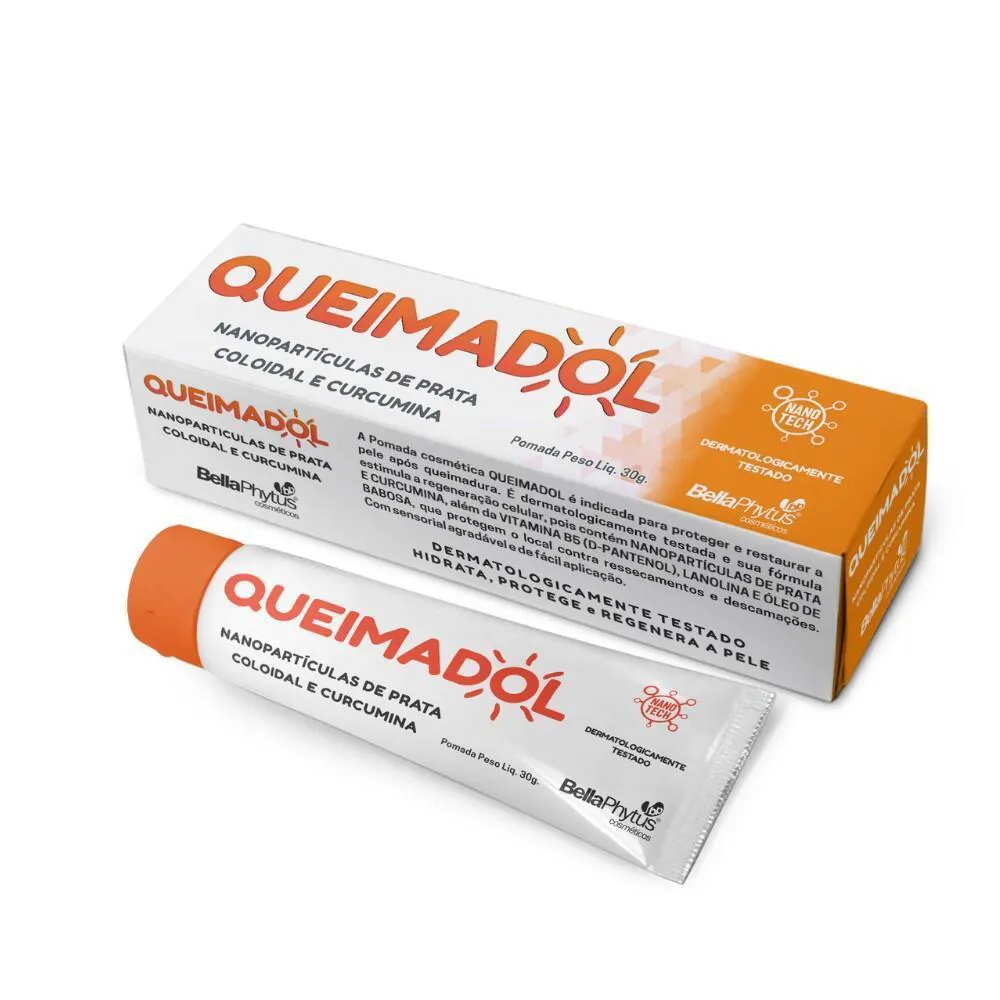A Pomada Queimadol BellaPhytus é um produto formulado para proteger e restaurar a pele após queimadura. Sua fórmula estimula a regeneração celular, pois contém Nano Partículas de Prata e Curcumina, além da Vitamina B5 (D-Pantenol), Lanolina e Óleo de Babosa, que protegem o local contra ressecamentos e descamações.