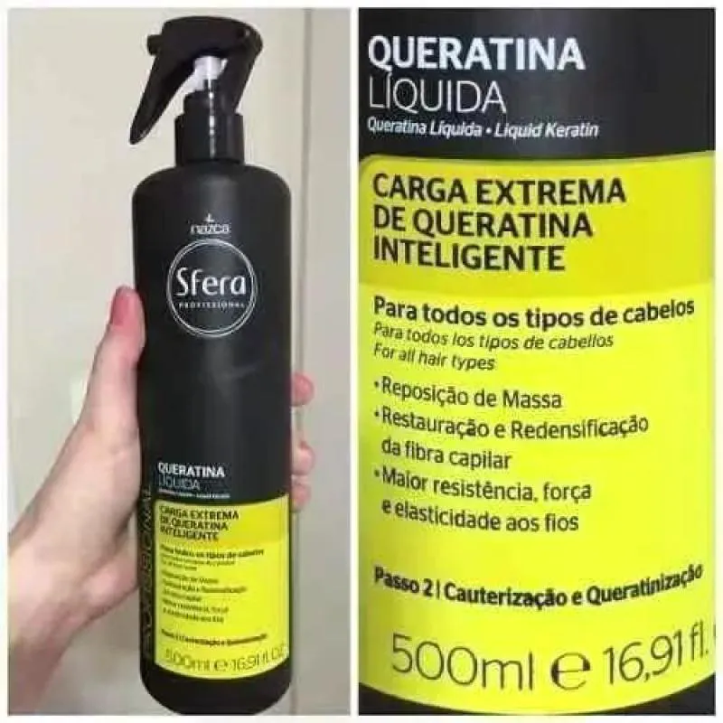 A Queratina Líquida Sfera Profissional foi especialmente reformulada para potencializar ainda mais a carga de queratina aos fios. Sua nova fórmula, com associação de ativos altamente tecnológicos, intensifica o poder de queratinização, reconstrução e hidratação dos fios, restabelecendo as fibras capilares e encapando os fios por meio do formação de uma película protetora. Queratina Inteligente: queratina desenvolvida através de uma tecnologia avançada, que reproduz uma sequência de aminoácidos e peptídeos, similares às proteínas de queratina encontradas na fibra capilar. Associada a uma tecnologia 3D, que permite a liberação prolongada do ativo e reparação inteligente apenas das áreas danificadas dos fios.