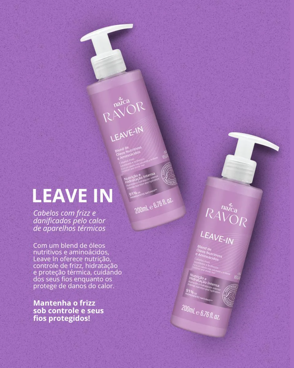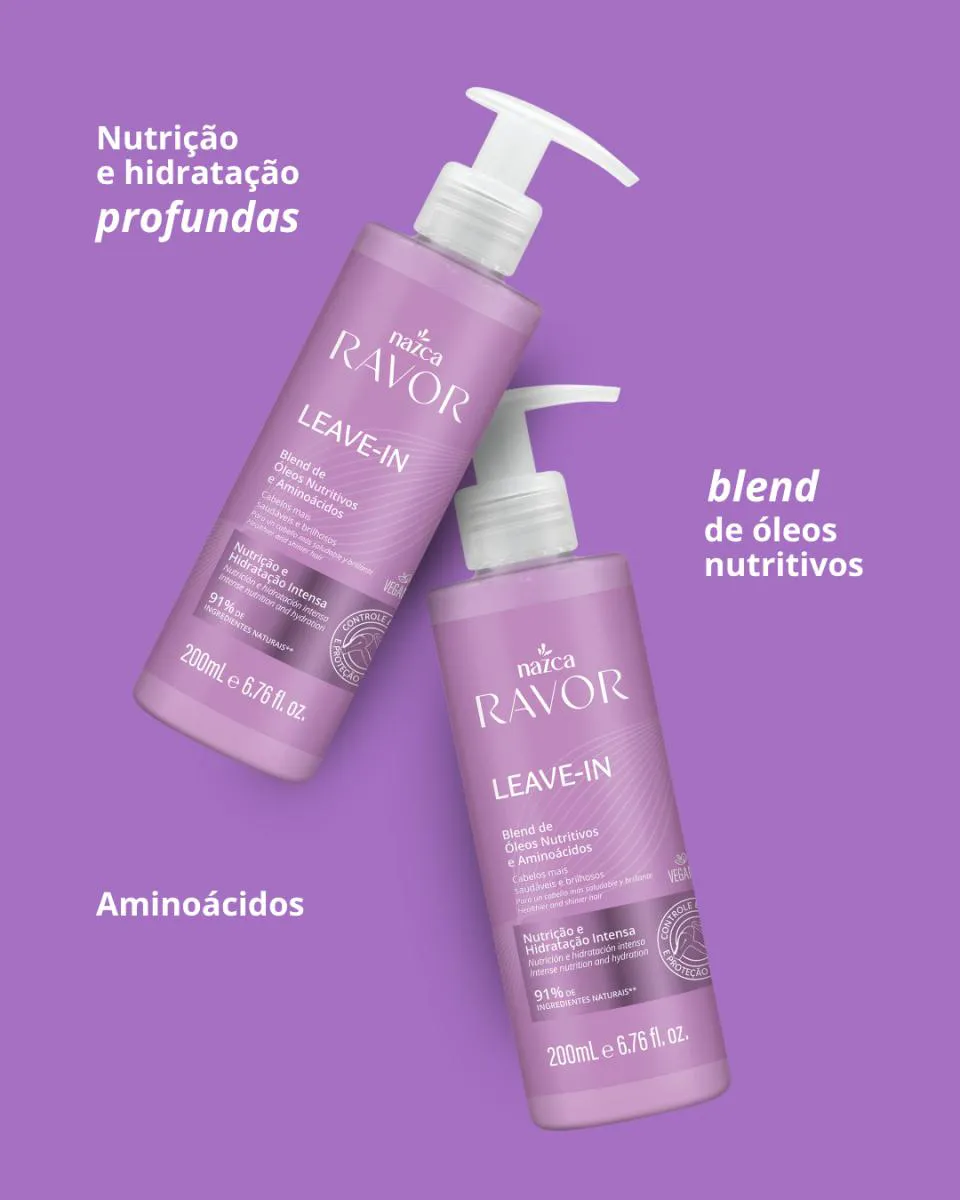 O leave-in Ravor serve para nutrir, hidratar e restaurar os fios do cabelo, proporcionando brilho, redução de frizz, facilidade no desembaraço e proteção térmica contra o calor de secador e chapinha. A fórmula é enriquecida com óleos nutritivos e aminoácidos, que fortalecem os fios, ajudam a evitar pontas duplas e melhoram a textura geral do cabelo